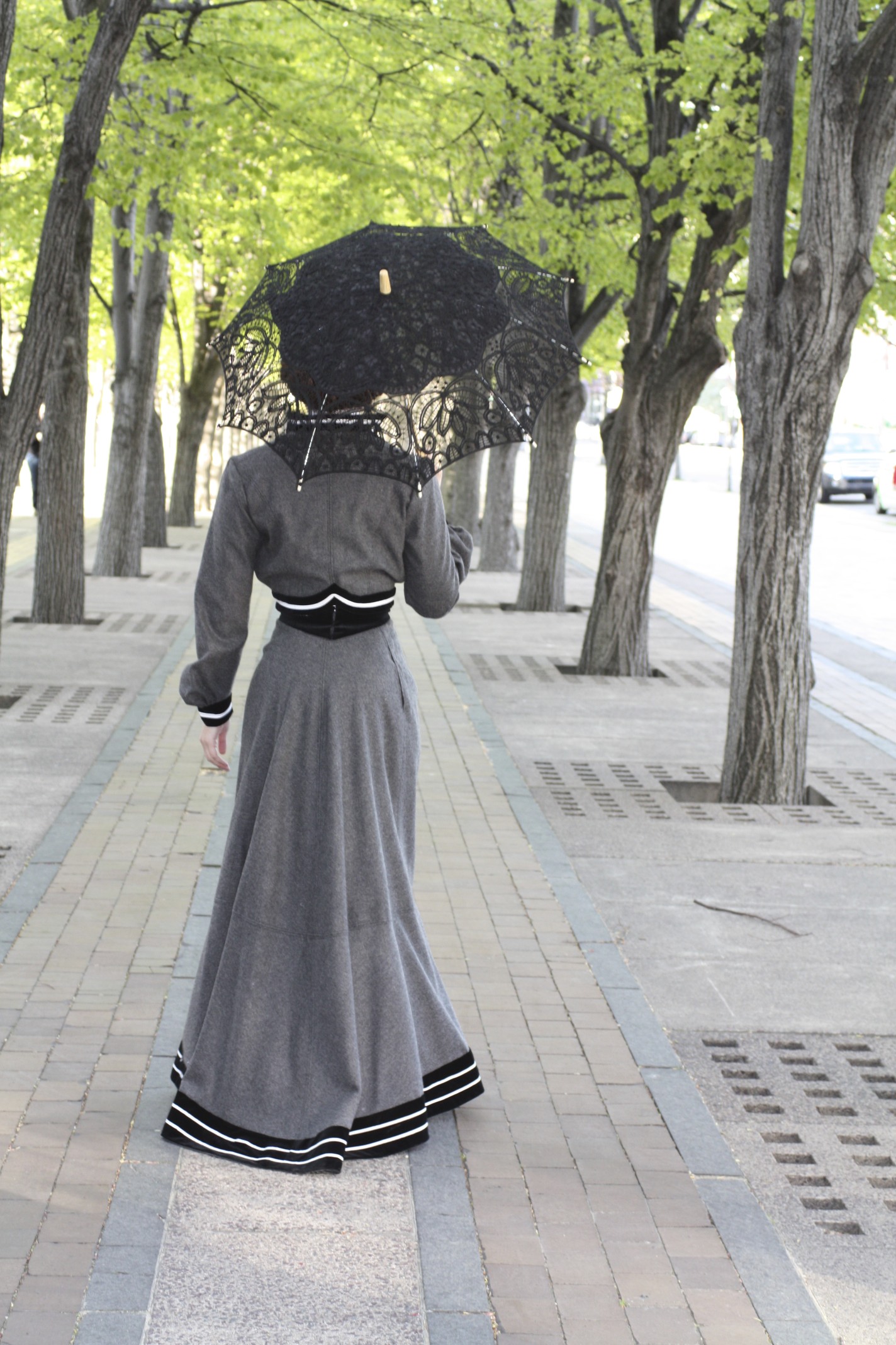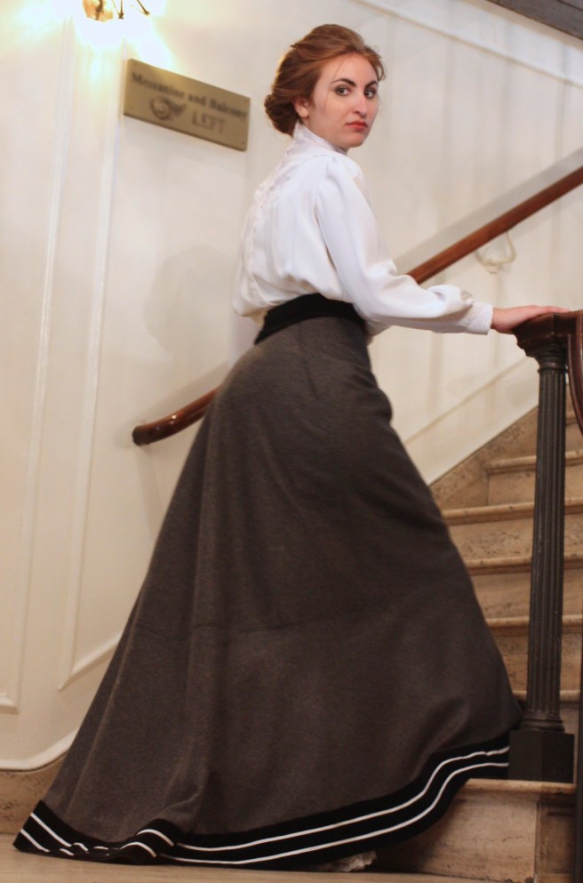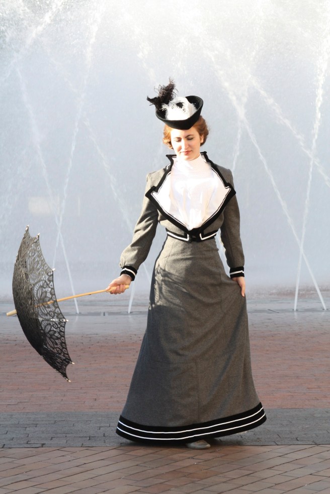 Well, we just got to see my 1883 tailoring project. Now let’s enjoy taking a mental stroll with my 1903 tailored look! Again, there are lots of pictures to see!