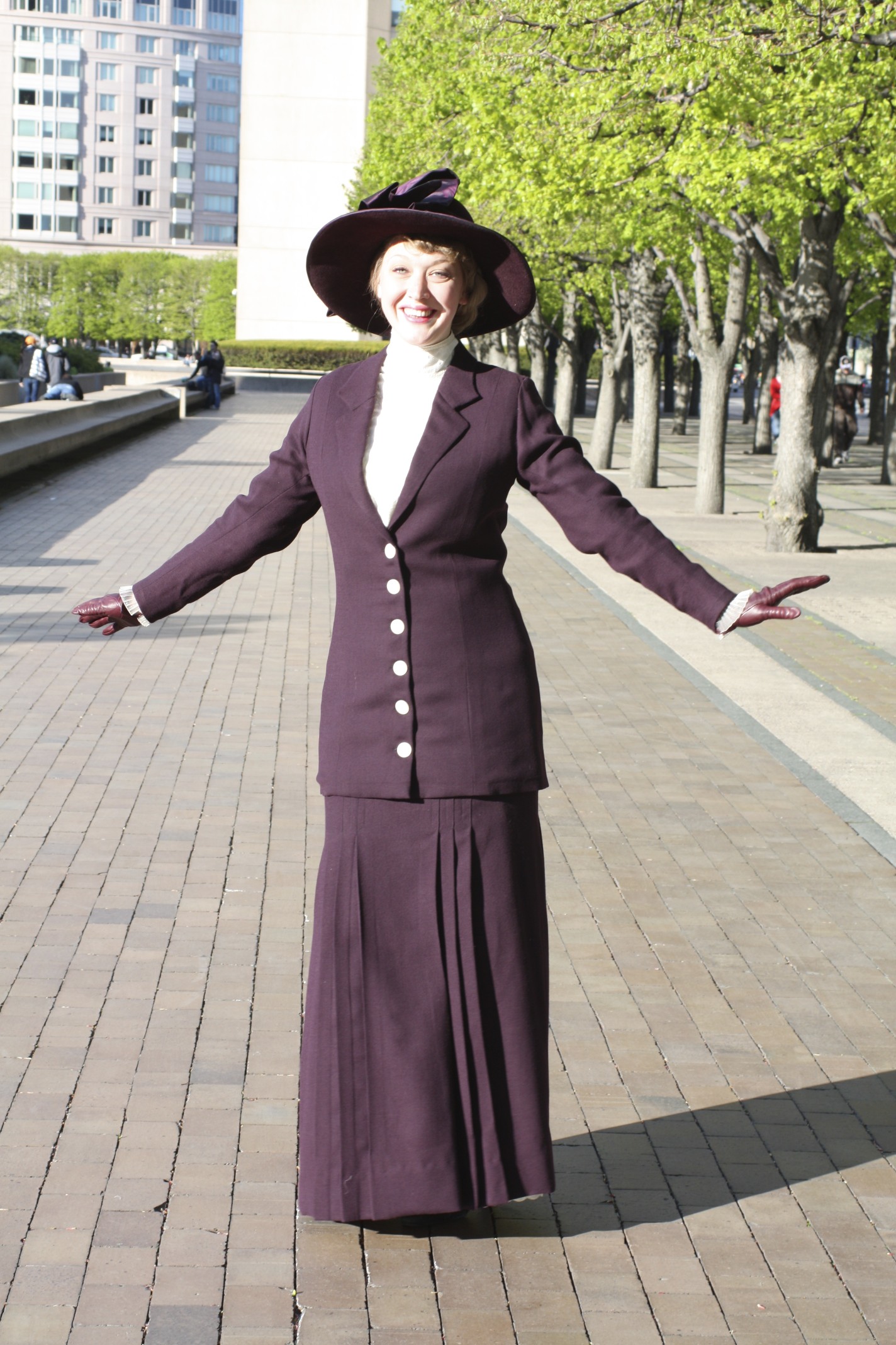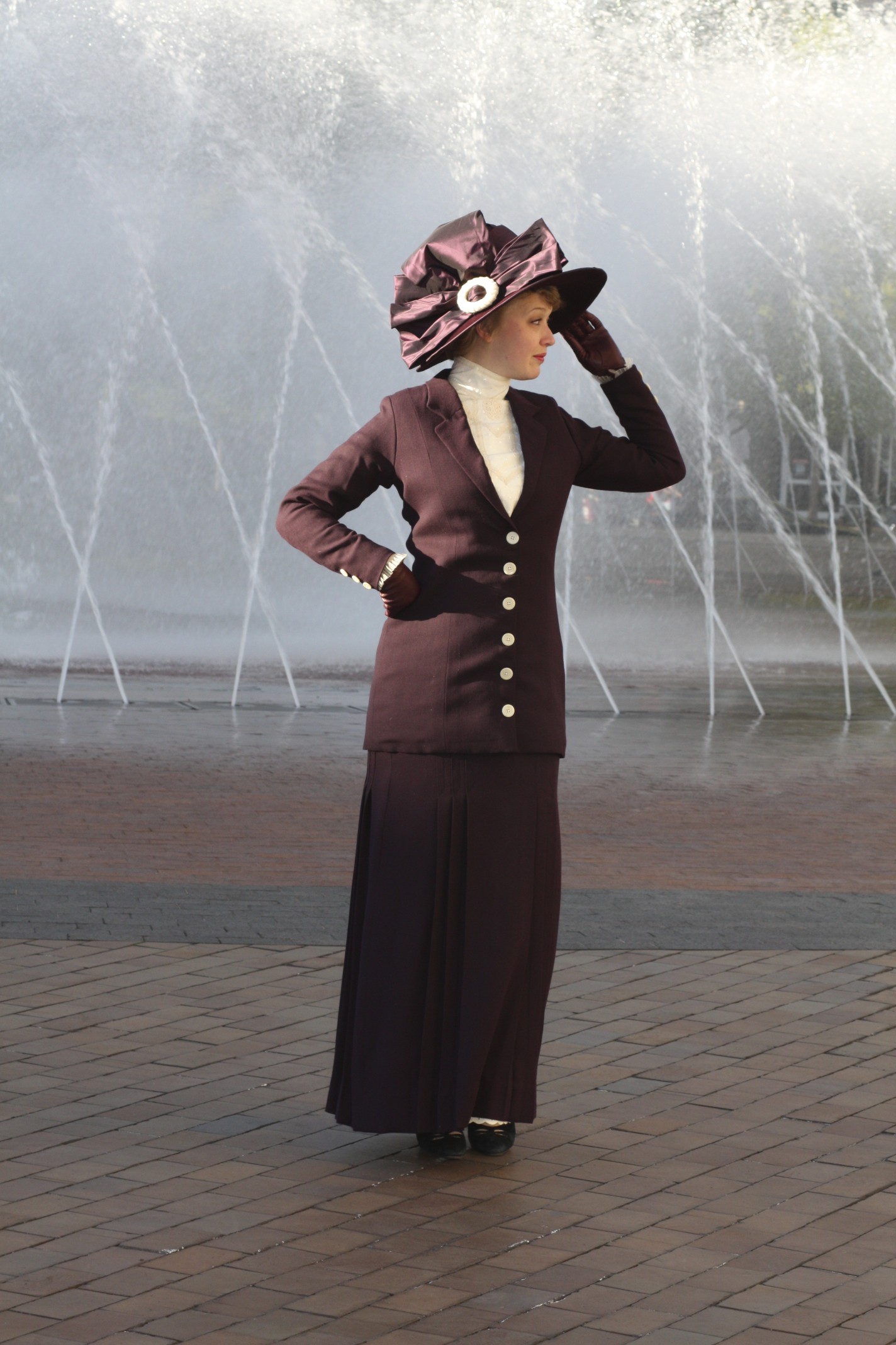 1913: Wool Suit. Wool Hat with matching Taffeta trim.1913 Suit and Hat1913 Suit and Hat1913 Suit and Hat1913 Suit and Hat1913 Jacket and Hat1913 Skirt, Blouse and Hat1913 Blouse and Hat1913 Undergarments: Corset Cover and Petticoat1913 Undergarments: Chemise and Corset1913 Corset