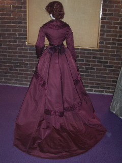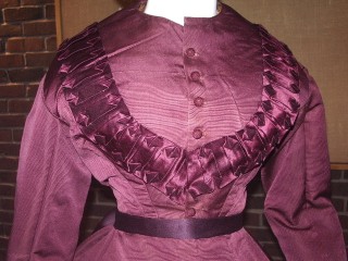 Just recently we looked at pleated trim on 1860s gowns. While I was thinking of that post I was reminded of this gown, which has fabulous pleated trim! It is in the historic costume collection at Smith College, in Northampton, Massachusetts. It was prepared for display and further storage during a historic clothing conservation workshop I took part in a few years ago.