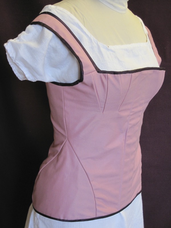 Well, it’s been a little bit of time since I shared with you my research and plan to build a Regency corset to accompany my 1819 gown. I’m excited to say that I was successful! The corset is complete, although I still plan to quilt a diamond pattern along front rib section within the next few months (I’ll share photos of that once it is complete). You can see the diamond quilting in the photos in the link, above.