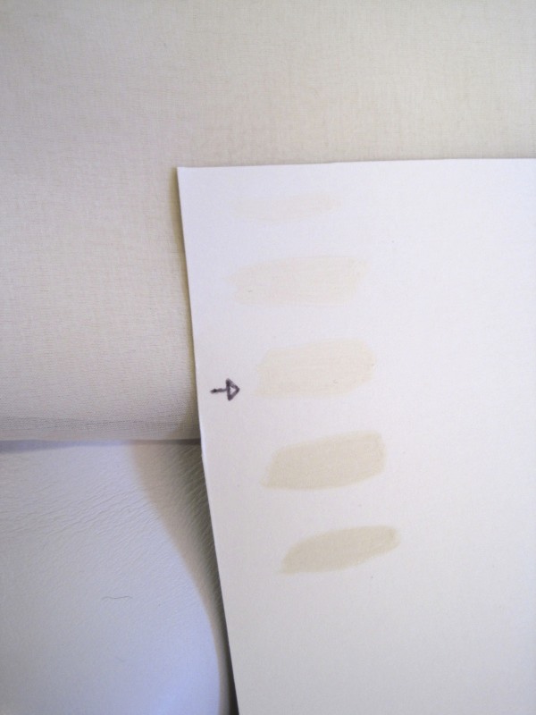 My swatch card, right side: with an arrow at the shade I like