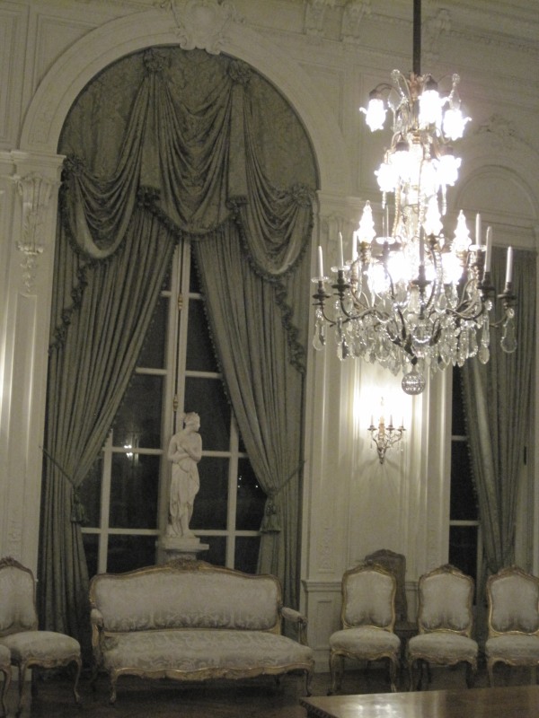 Commissioned by Nevada silver heiress Theresa Fair Oelrichs in 1899, architect Stanford White modeled Rosecliff after the Grand Trianon, the garden retreat of French kings at Versailles. After the house was completed in 1902, at a reported cost of $2.5 million, Mrs. Oelrichs hosted fabulous entertainments here, including a fairy tale dinner and a party featuring famed magician Harry Houdini. (From the Newport Mansions website about Rosecliff. The site also includes really beautiful pictures of the mansion. I encourage you to click the link to look at them!)