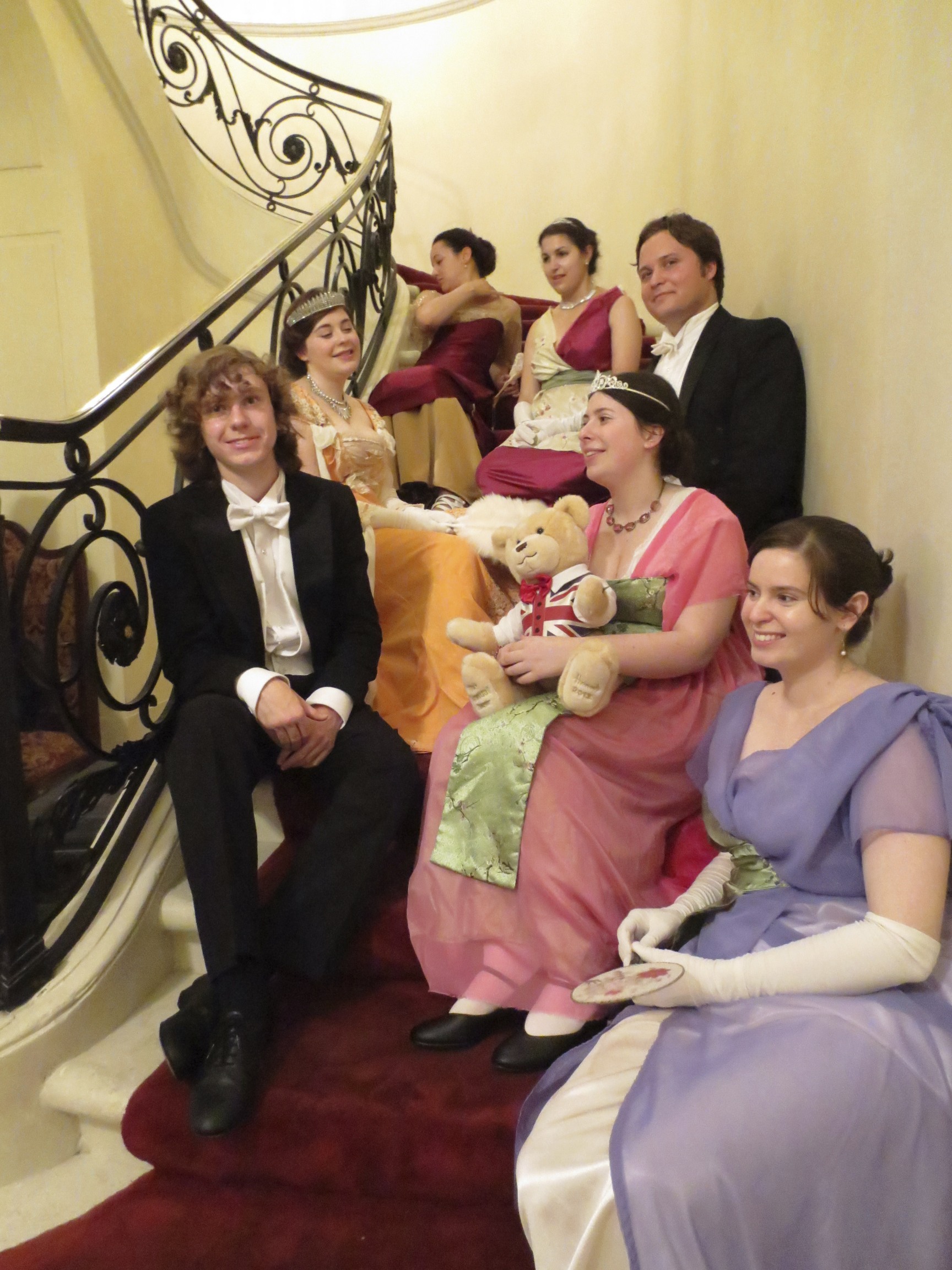 At the very end of my first post about the Ragtime evening event at Glen Manor, I had just shared with you our series of pictures of the “young set” spelling out our most recent acronym: TNG. You’ll have to read the captions in the pictures of the that post to see what it stands for, because this post is moving on to pictures of the Ragtime ball. Before I start on pictures, I just have to share that this ball had the most fantastic food catered for our dinner. I don’t know what company catered it, unfortunately, but it was spectacular and delicious! We all ate generous first and second helpings and were super full… but it was SO good!