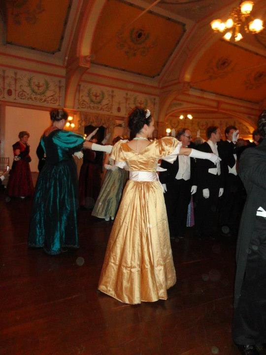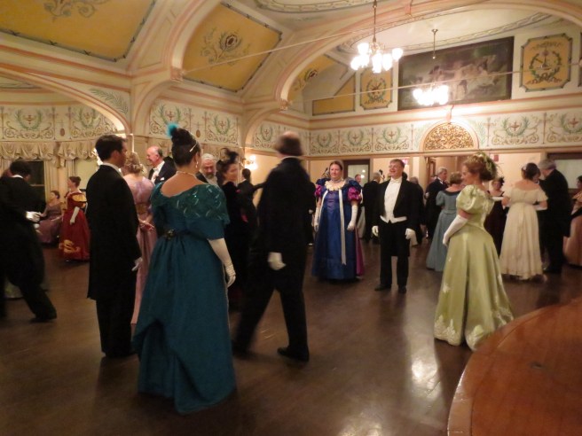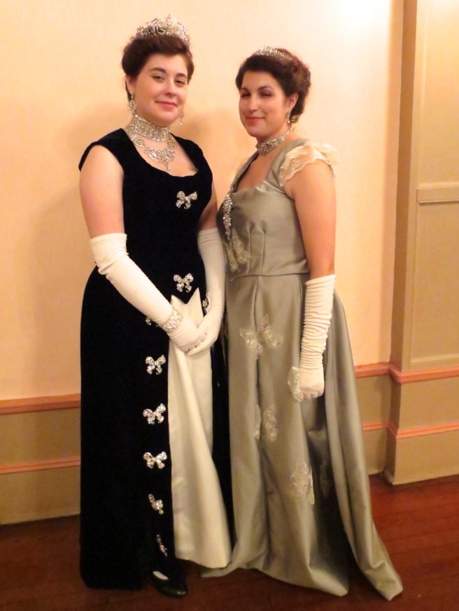 Now, before we proceed any further, I think we must ponder the definition of the word “casino.” To our modern minds, the word evokes a house of gambling, but that is not the appropriate definition for this particular venue. Here is Merriam-Webster’s first definition of the word: 1-a building or room used for social amusements; specifically: one used for gambling. Clearly, we were going out for social amusements! An example of the word in use (and related to our ball!): “on summer evenings dance bands would perform in the seaside casino.” So fitting!