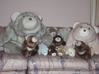 2- I may be an adult (most days) but I still have a childhood attachment to my family of Gund Snuffles bears. As you can see, I have a variety of sizes and colors.