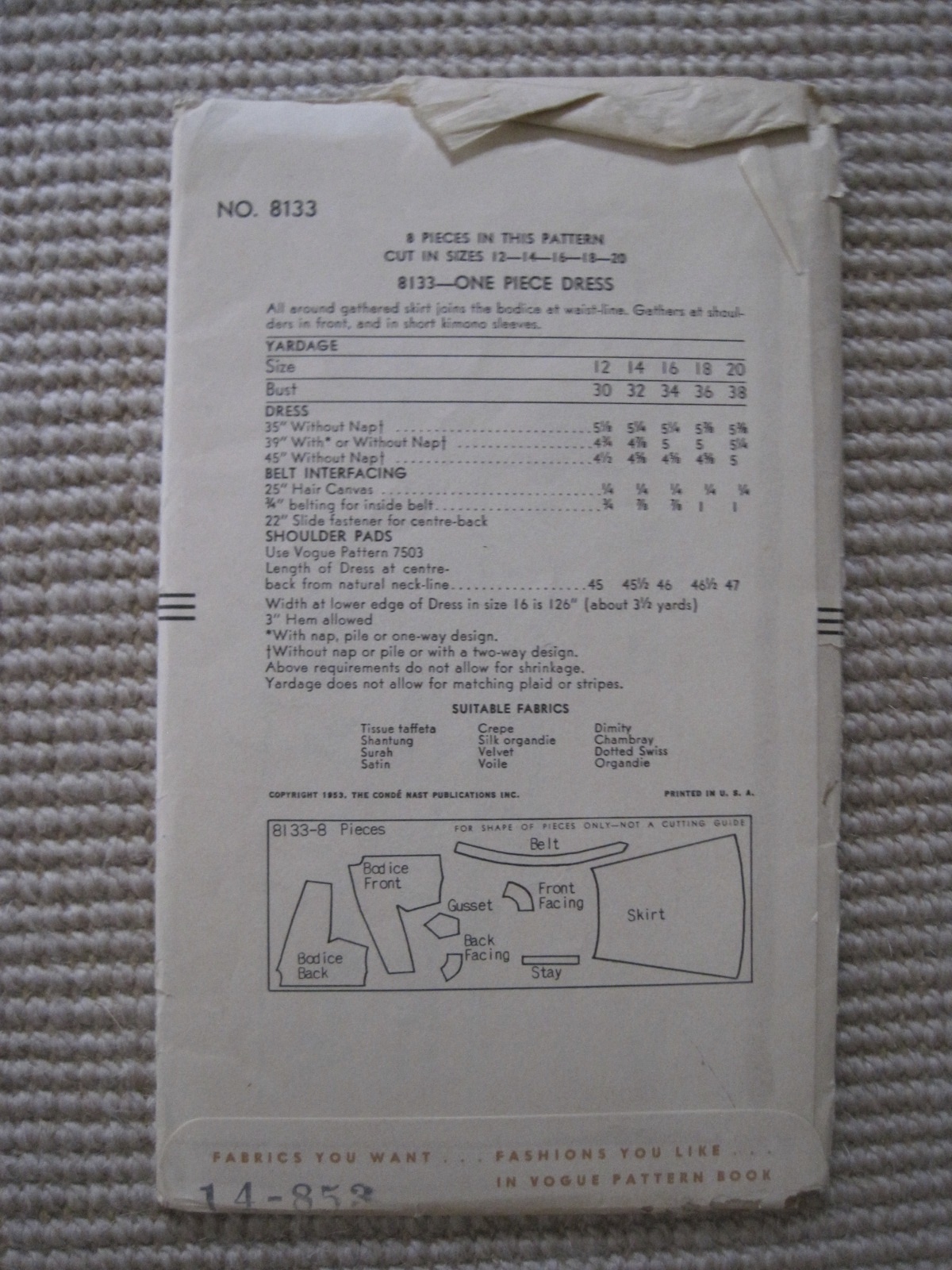 First, a 1950s vintage Vogue pattern!