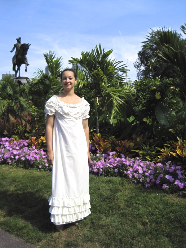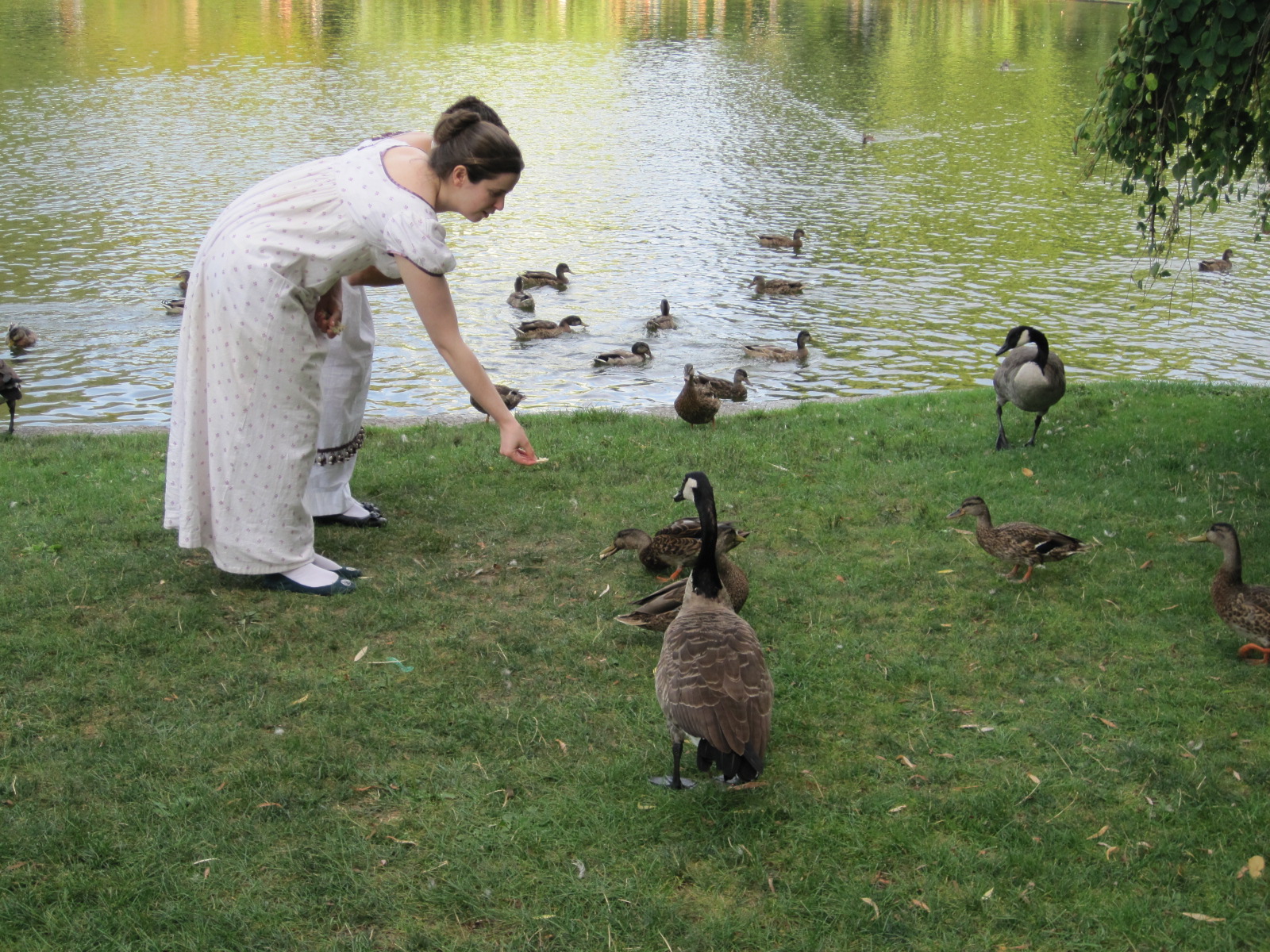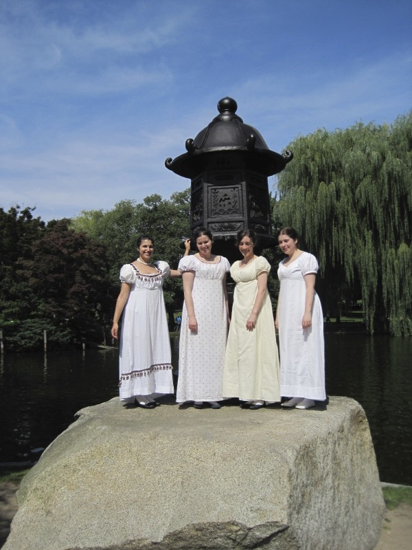 Summer is mostly over, here (although we did just have a nice, warm, sunny day that felt like summer…), but I haven’t finished sharing about summer picnics! To bring a little summer to you, here are a few pictures from a Regency picnic in the Boston Public Garden in August. The Boston Public Garden was established in 1837, so we were a little early, in our Regency dresses.