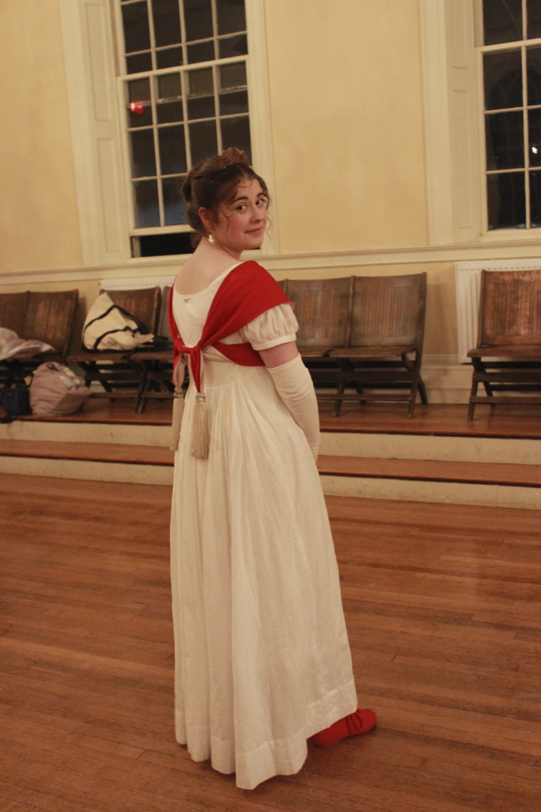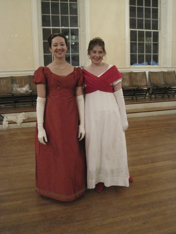 Another thing that the Nemo blizzard affected was the Commonwealth Vintage Dancers‘ Pride and Prejudice Ball. Luckily, the ball was able to be rescheduled for this past weekend, which means that I did wind up having an opportunity to wear my new 1813 red gown (my HSF #1 project) after all! And that means pictures! Lots of pictures, in fact. I think I’ll split this into two posts… To start: the clothes!