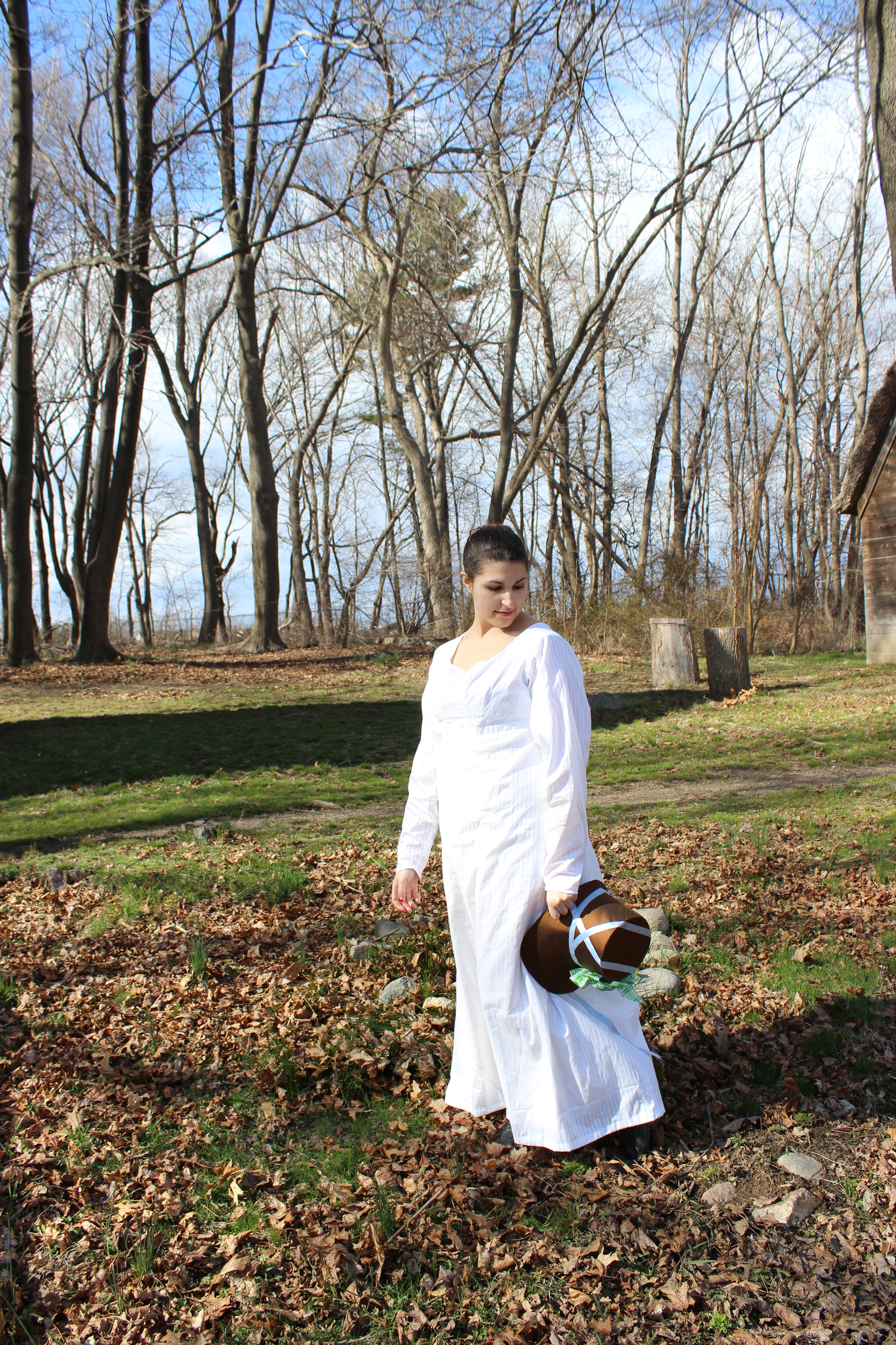 New clothes amongst the trees.Striking a pose on the footbridge.Climbing a fence. Perhaps while out on a stroll? I feel like this is something the more athletic Jane Austen characters do.New long sleeved day dress and a new bonnet. You know how it is when someone is wearing something new. It always requires pictures!I was very pleased with how my new dress and bonnet look and feel, and I’m so pleased that they coordinate so well with the spencer. Yay!Spencer time. It’s so neat that we’ve built up our wardrobes and are well equipped with dresses and spencers! Bonnets are on most sewing lists, too, which is so much fun!