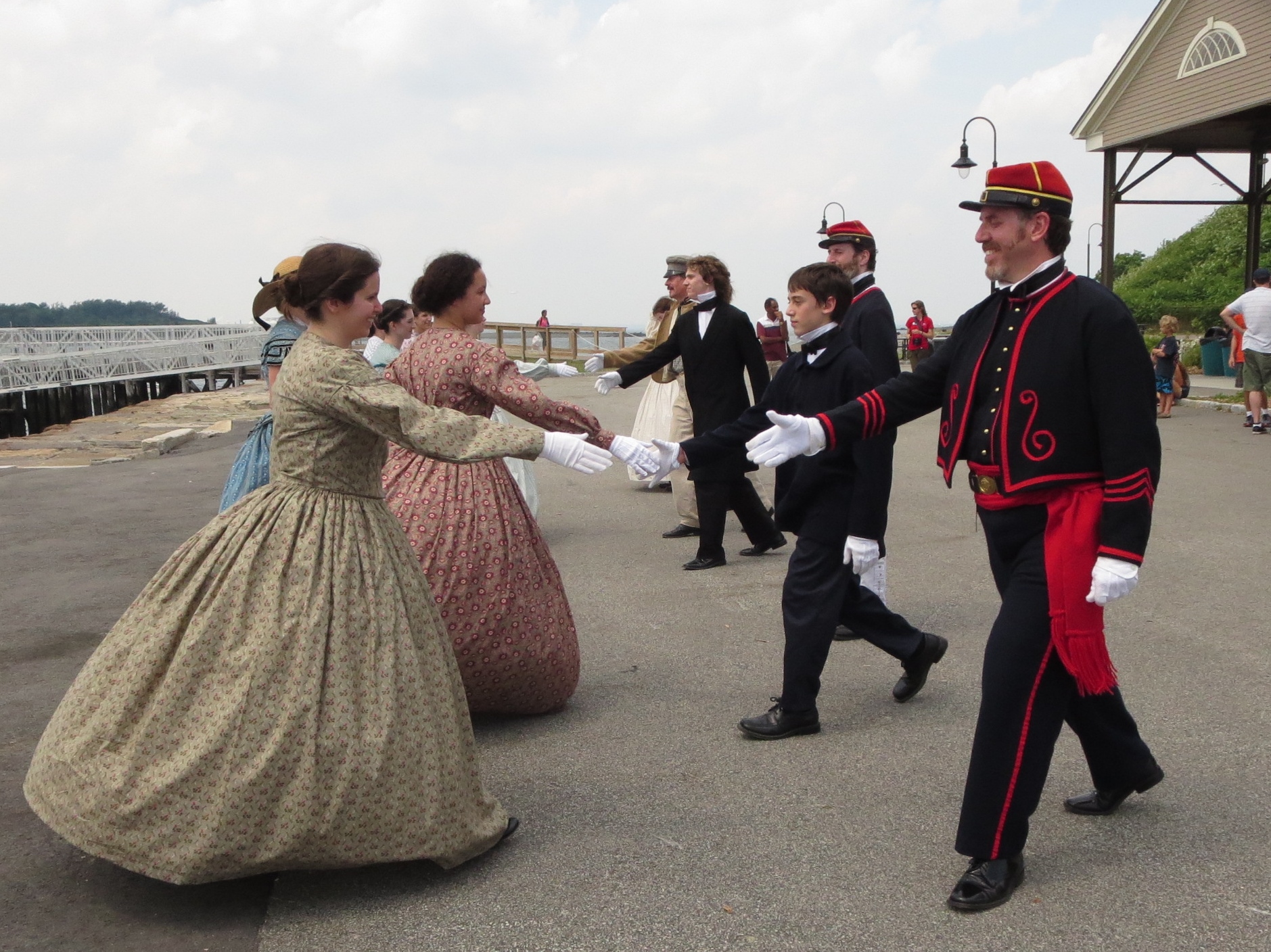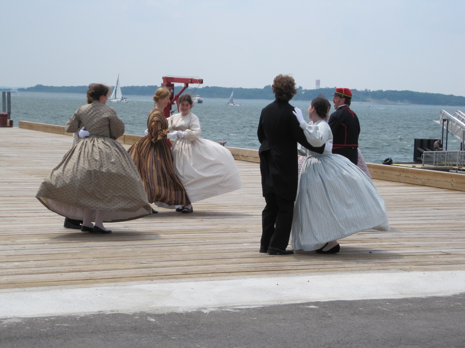 You’ll remember that I introduced you to Georgina in my last post? Georgina’s first outing was for at a mid-19th century vintage dancer performance on George’s Island in the Boston Harbor. It was a super toasty day and we were dancing mostly on asphalt or an uneven wood dock, but we all survived and looked lovely and dashing.