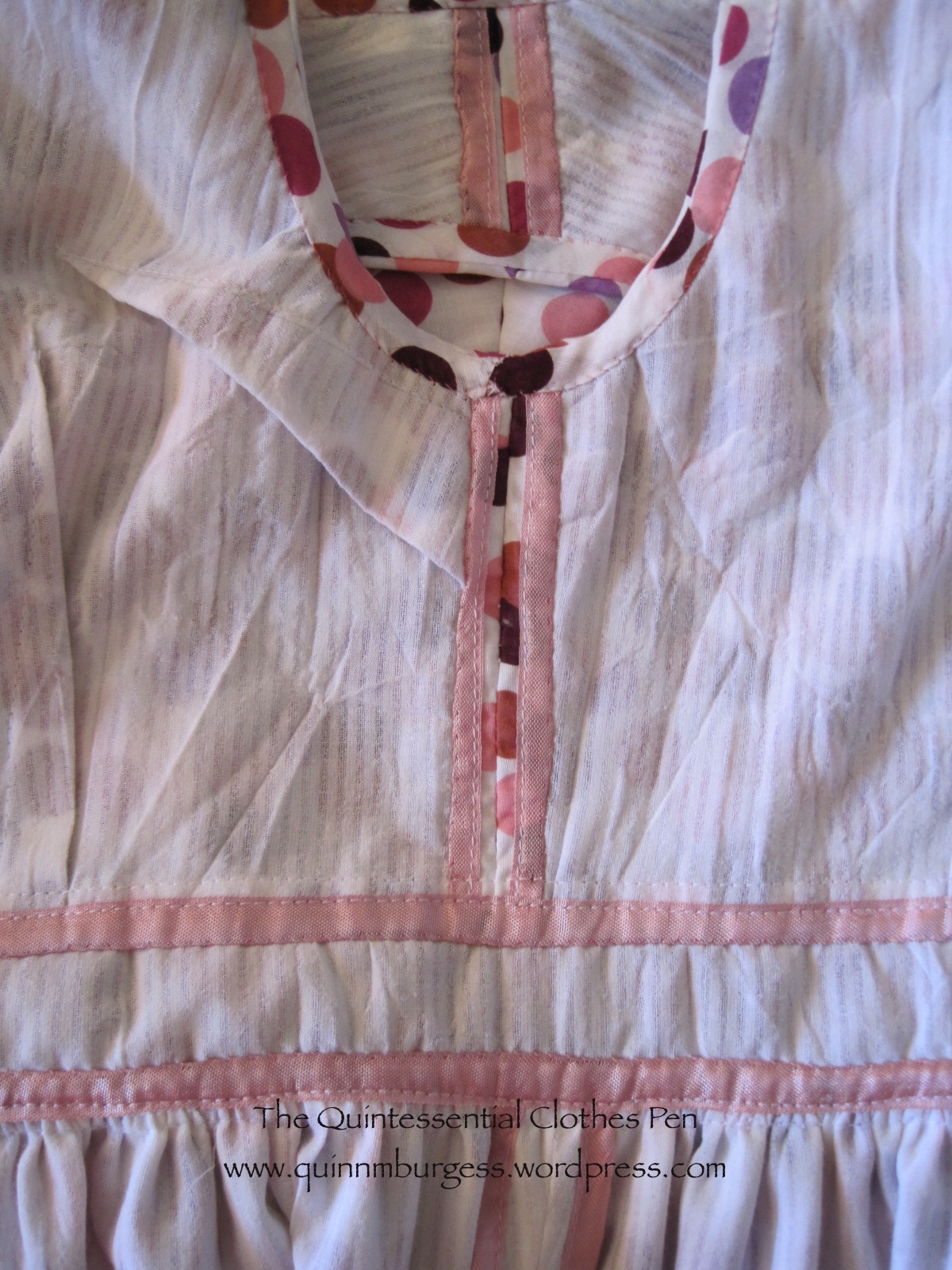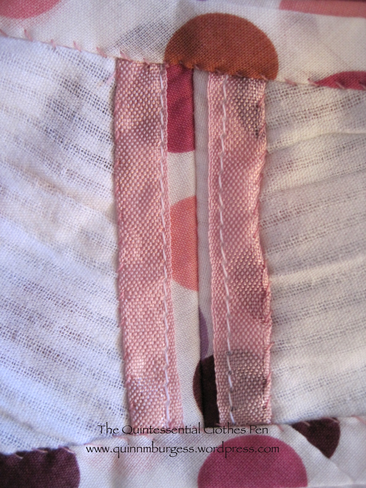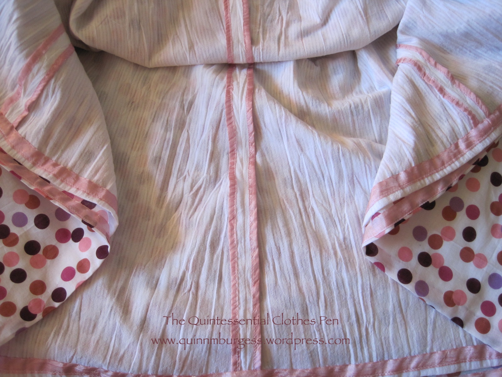 Really cute, Quinn. The dots are SO 1950’s. I, too, love the pink binding on the white. I think I’ve figured out what “Hug-Snug” is from the pictures. (I was going to ask.)