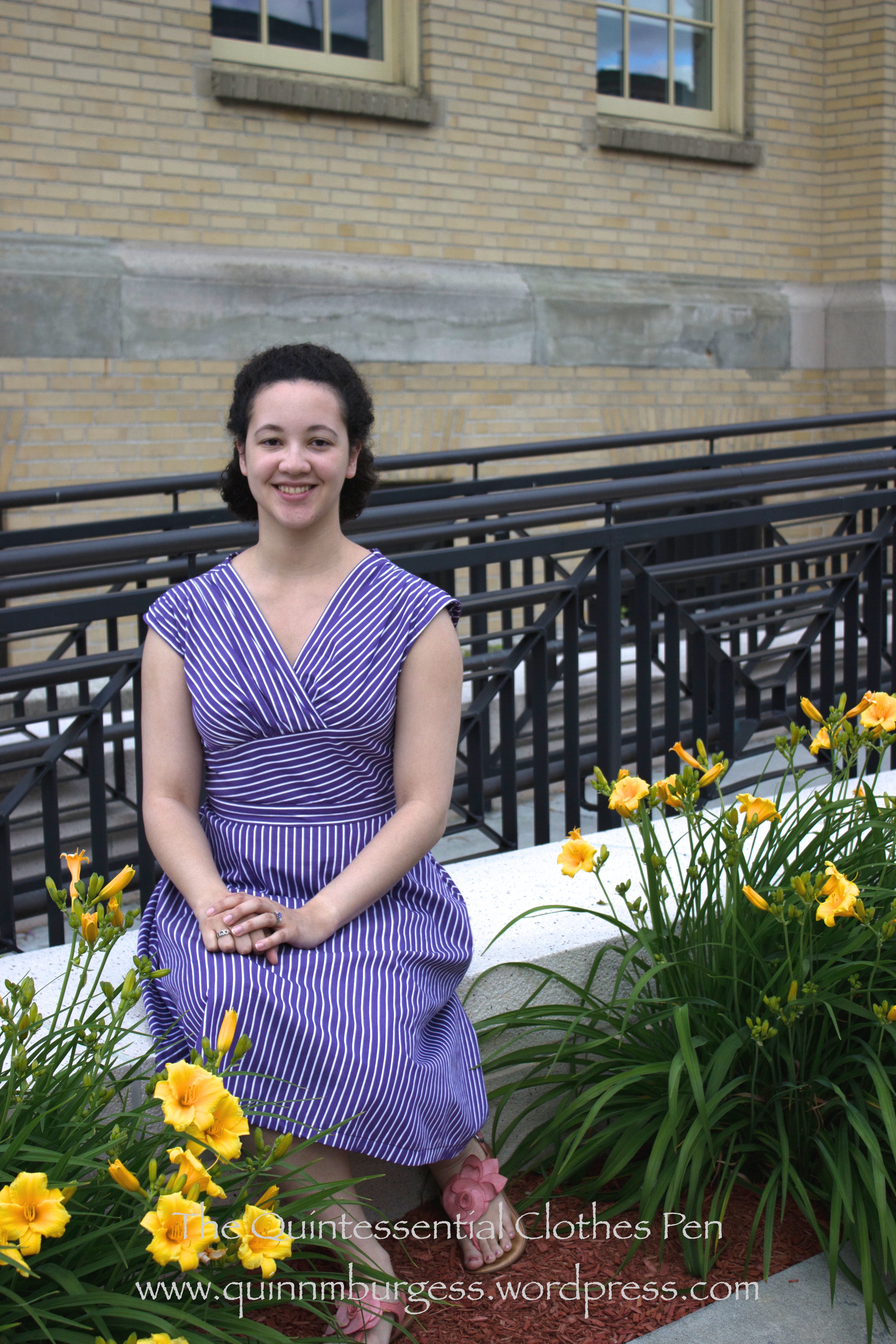 By way of a longer explanation: I created the pattern for my version of this dress from scratch and made substantial changes to the original design in order to create a style I liked that also fit me. It is definitely an inspired-by dress in the end–I wouldn’t say that the pattern I created is really true to the original in many ways except the direction of the stripes.