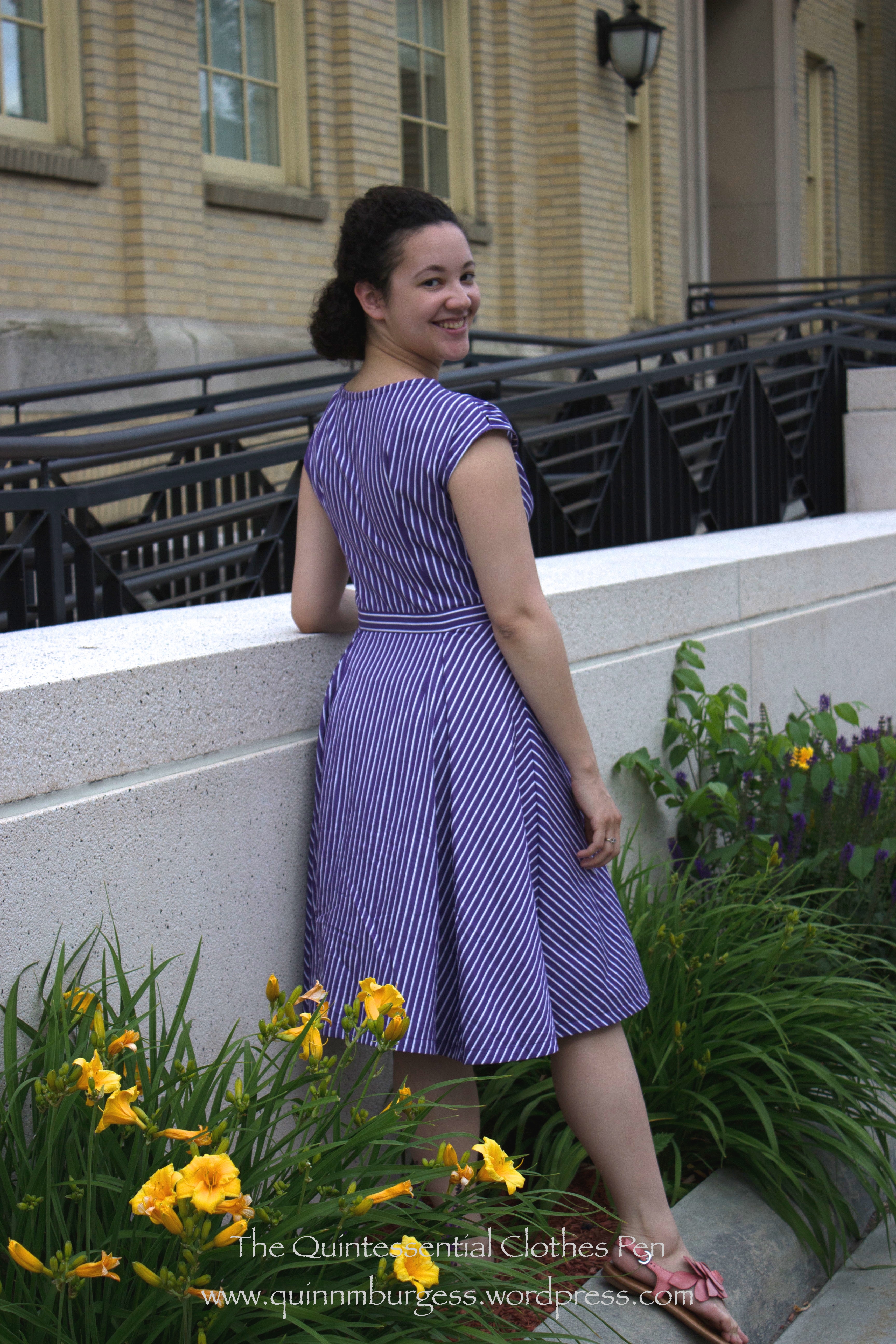 Once I decided to go for the Modern-Does-1940s look I also decided not to bother with the buttons on the bodice. My dress does have topstitching like the pattern image, though you can’t really see it with all the stripes going on.