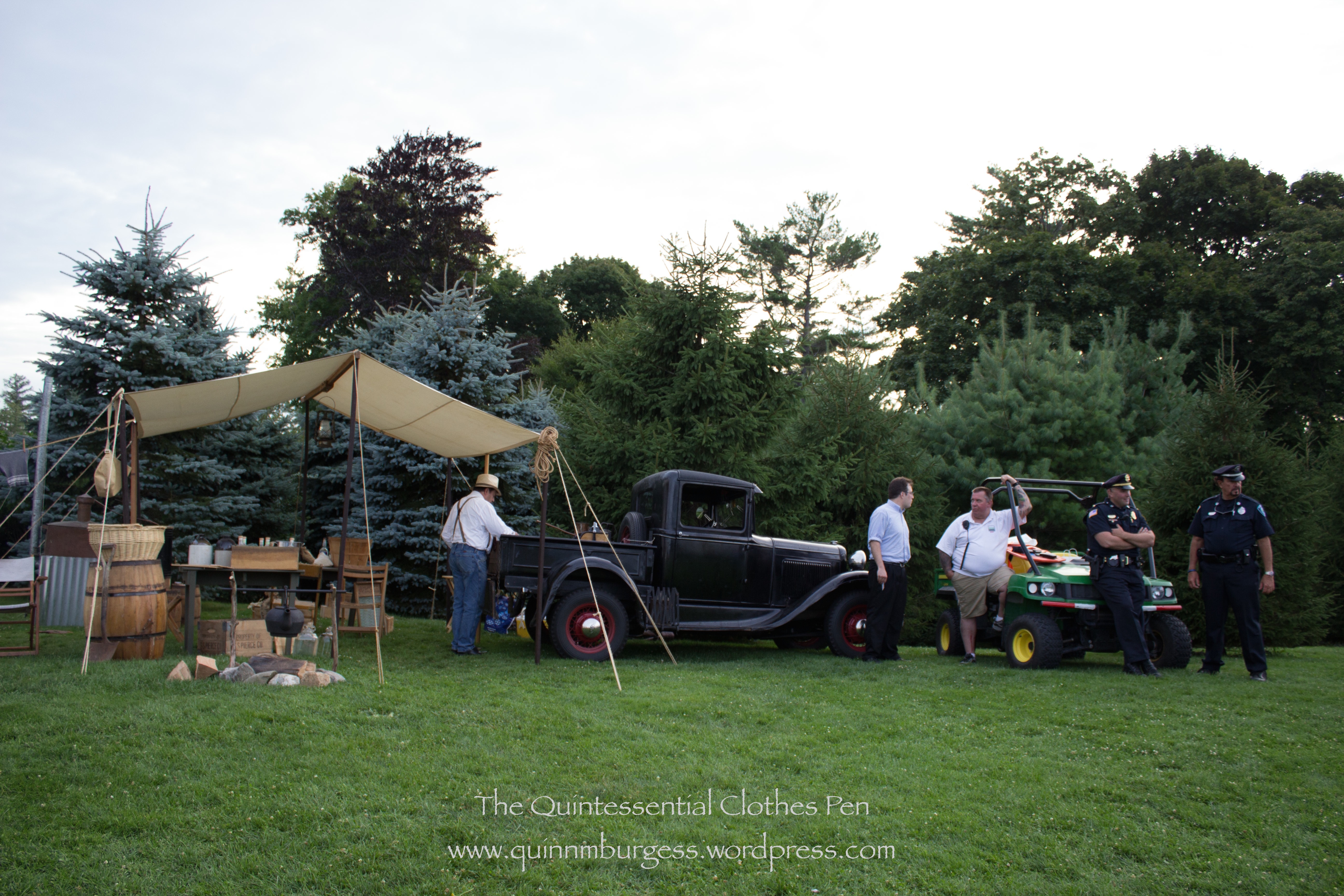 You could always try tea dyeing your top to get a slightly darker color? It looks lovely together either way! I do envy you being able to attend the party that day. I love that Pickup (?) the bootleggers using, Must have had donuts around if the cops were there.