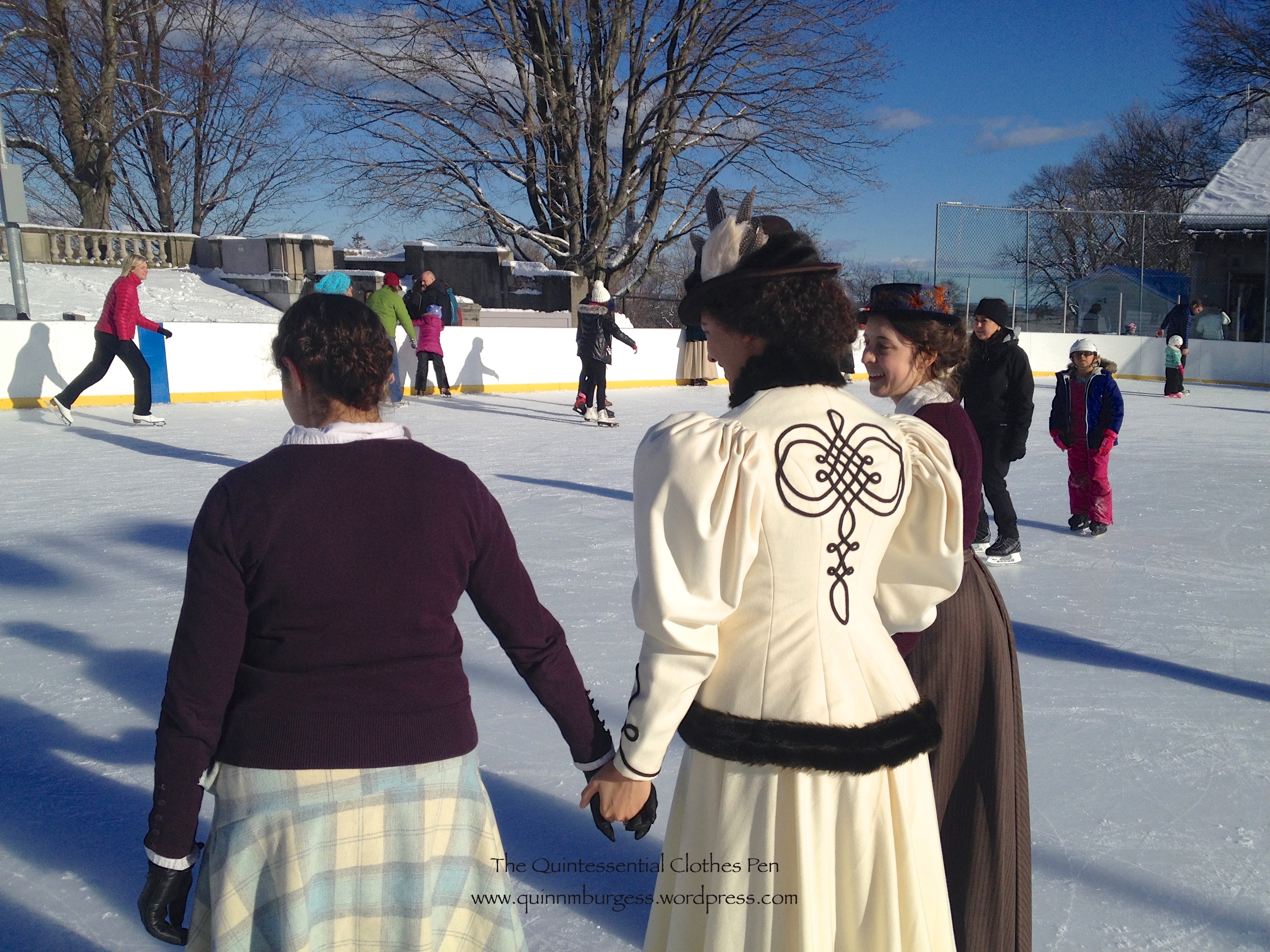 2. Holy moly! The first words out of my mouth, well, that is after the squealing, were along the lines of ohmygoodnessthisissosososoperfect! Quinn, your 1890s skating ensemble is just gorgeous!! Pure perfection. And your companions are beautifully dressed as well – looks like a lot of fun!