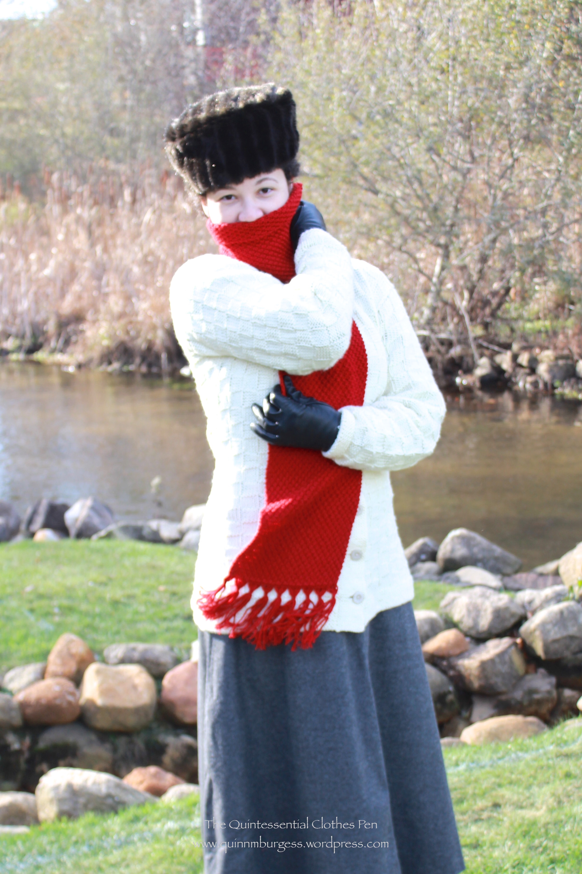 Last fall, in November I believe, I actually finished the 1917 wool skirt I’d made in 2013 as part of my 1917 Ensemble. Of course, it was wearable prior to being completed–I’d worn it for it’s original purpose and for a picnic in May 2013. But it wasn’t actually completed until I wore it last November when I also wore my 1917 Cranberry Red Scarf.