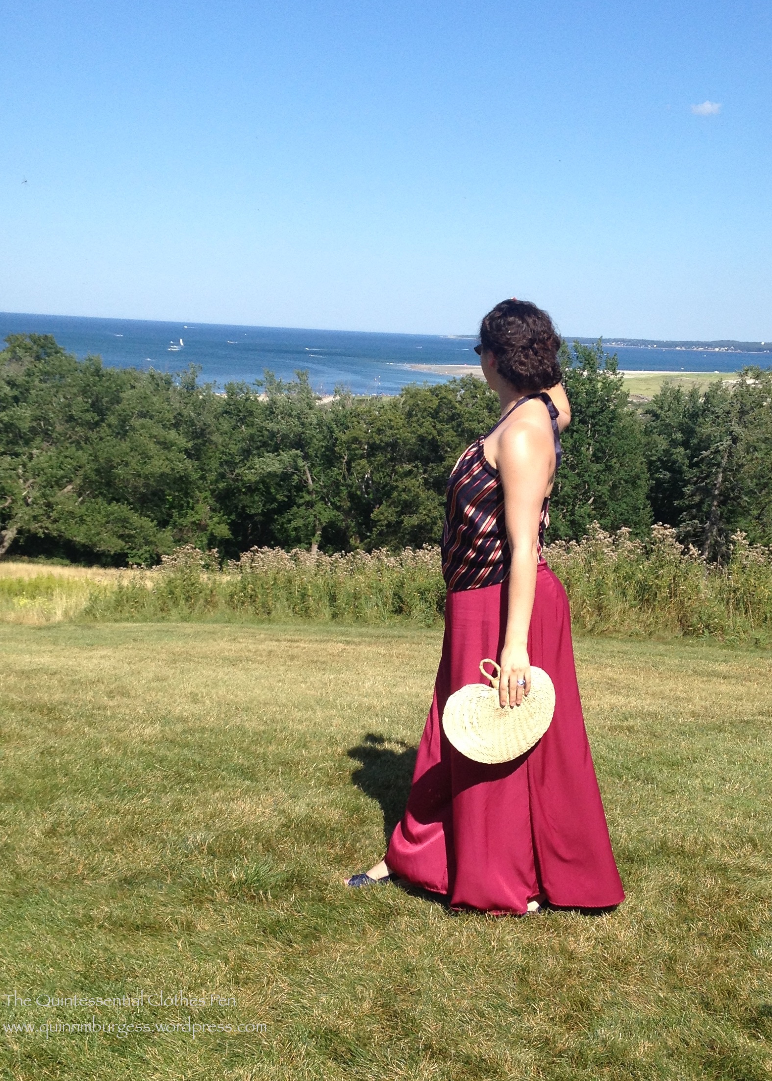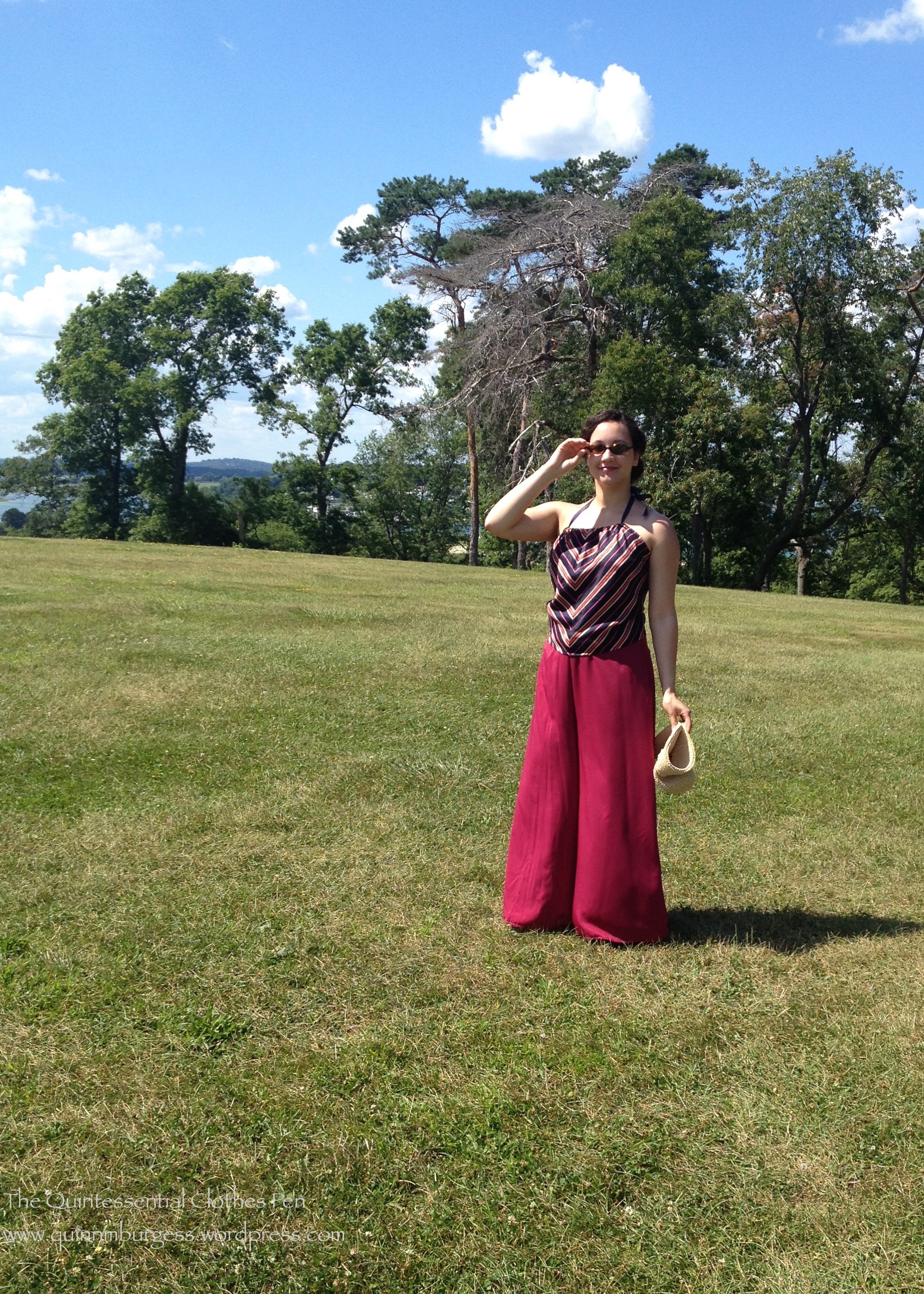 In August, I attended the 1920s Crane Estate Lawn Party again for it’s 3rd year. The last two years I’ve worn dresses (my 1926 sailor dress and my 1922 blouse, hat, and parasol ensemble), but this year I had hoped to go to the beach prior to the lawn party and I really wanted a more beachy ensemble than a dress. It was also on my to-do list to make a 1930s beach ensemble, so I bent the time period of the lawn party a bit and decided to make and wear a new 1930s beach ensemble despite not actually making it to the beach.