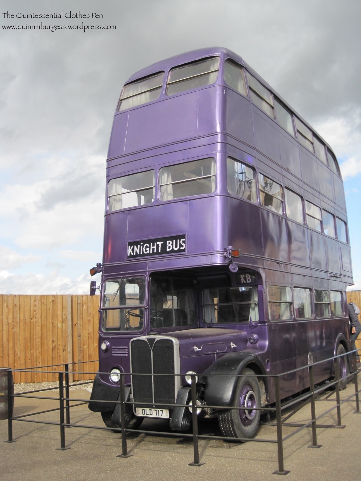 On the backlot–the triple decker Knight Bus. Turns out they stuck multiple buses together to create it. And they actually arranged to shut down very specific streets in London to film it. Why specific? Because it’s too tall to fit under bridges!
