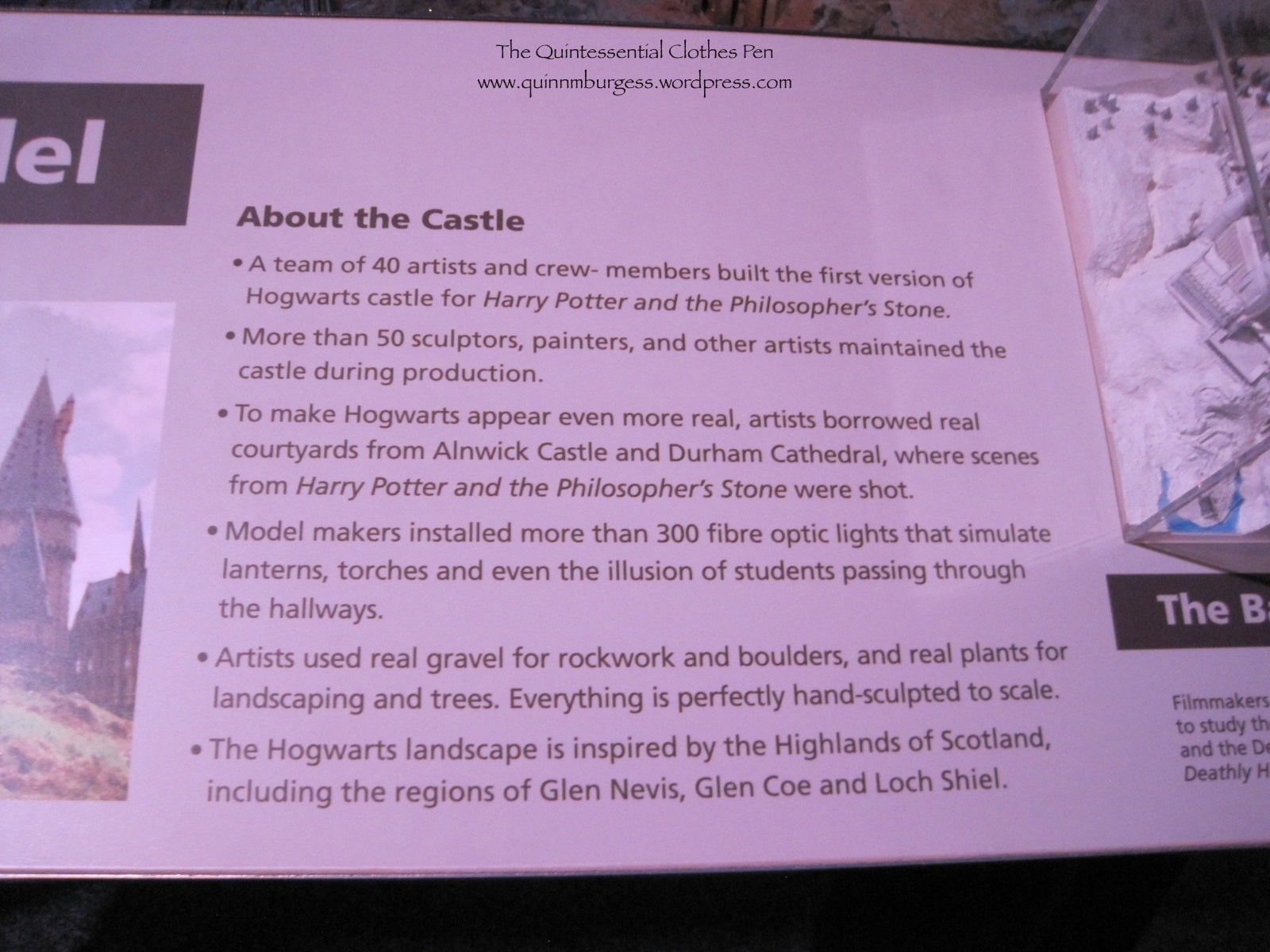 It has it’s own room, with a ramp that circles around and slowly descends, so you can see the castle from every angle. This is what they used to shoot some of the outside scenes of the castle.