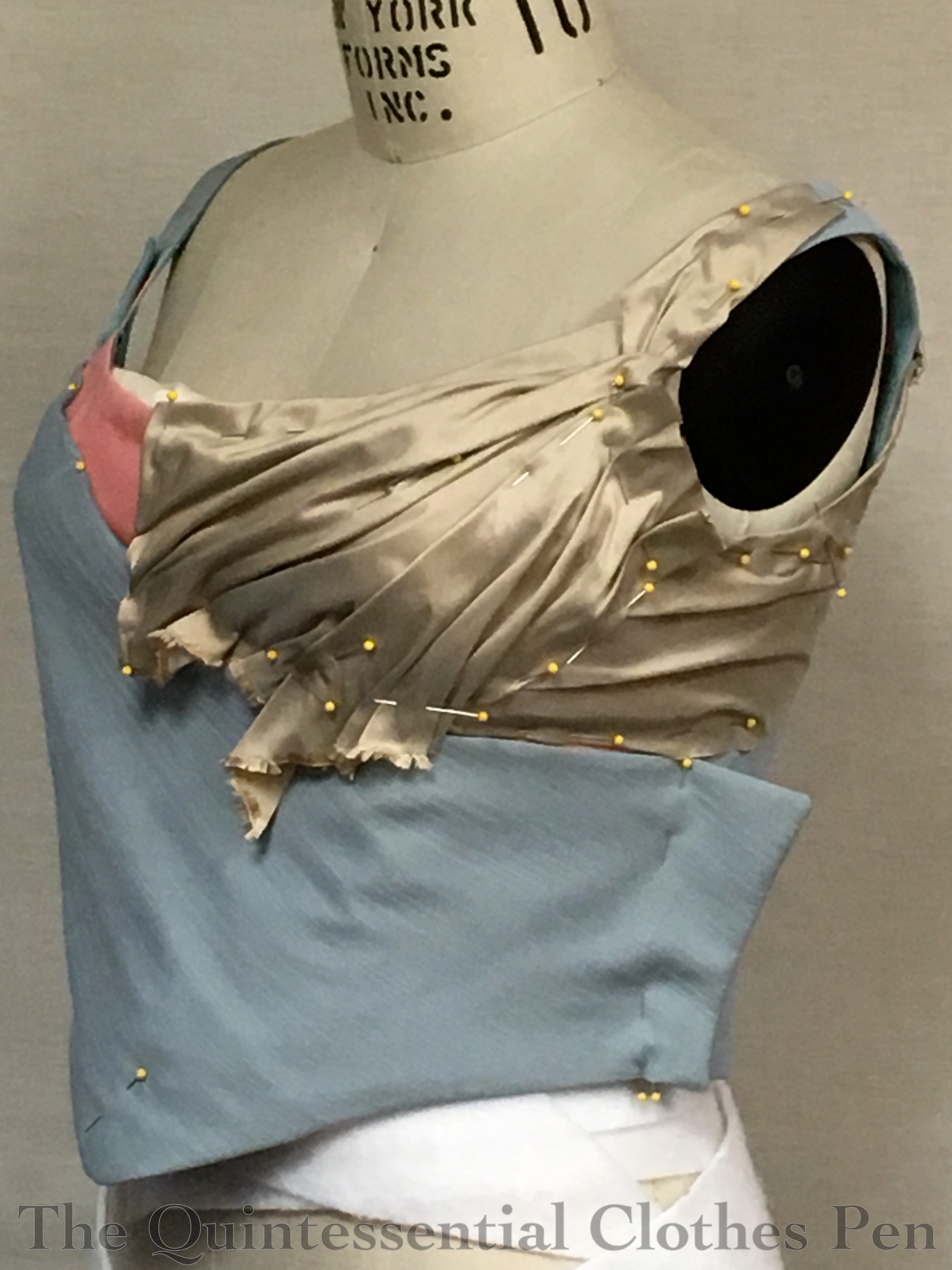 Sewing down all the pleats just so, in order to look natural and not constrained, took rather a long time, as did nicely tucking all the silk around the armhole. But it was worth it!