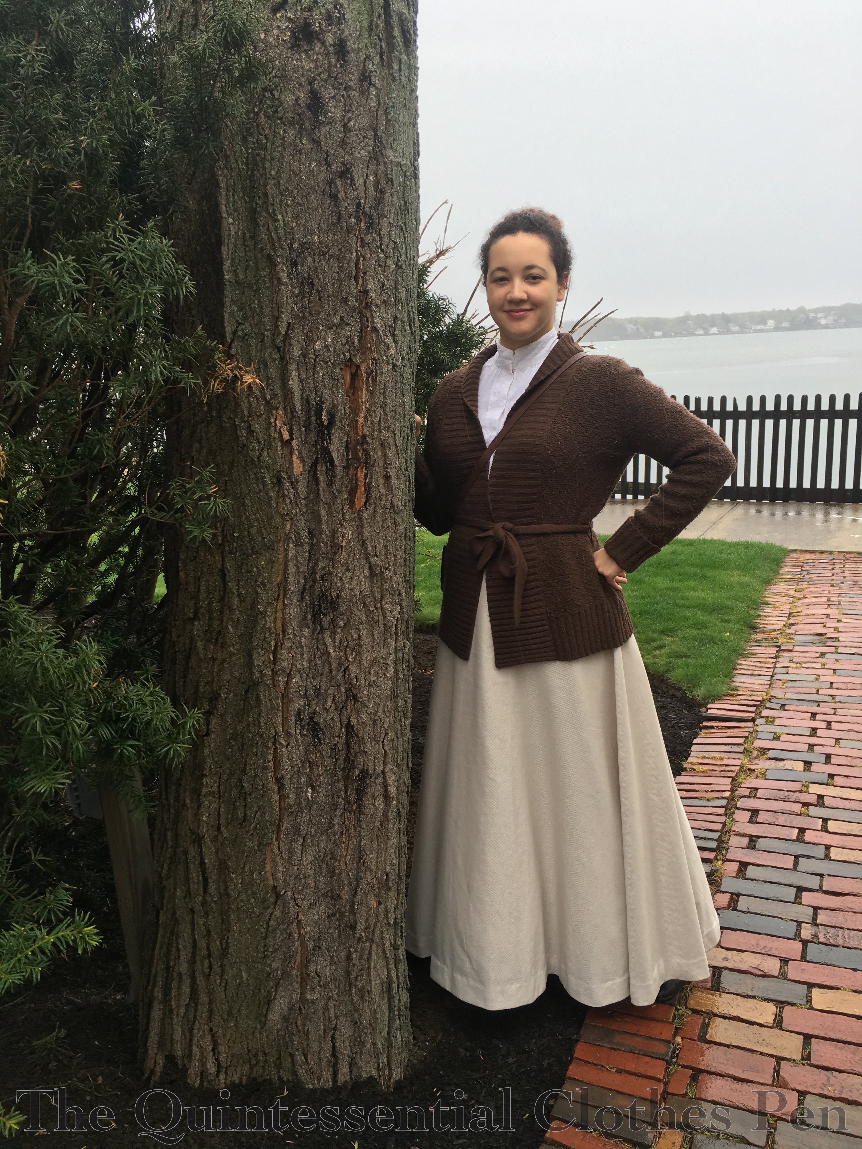 The morning was rainy and cold and so I threw on a sweater to keep warm. I rather fancied that I looked like an 1890s adventurer, sort of 1890s-lady-does-Indiana-Jones-in-the-rain-without-the-hat. (I really want to make an adventuring/archeologist outfit and find a great place for pictures…! Someday…)