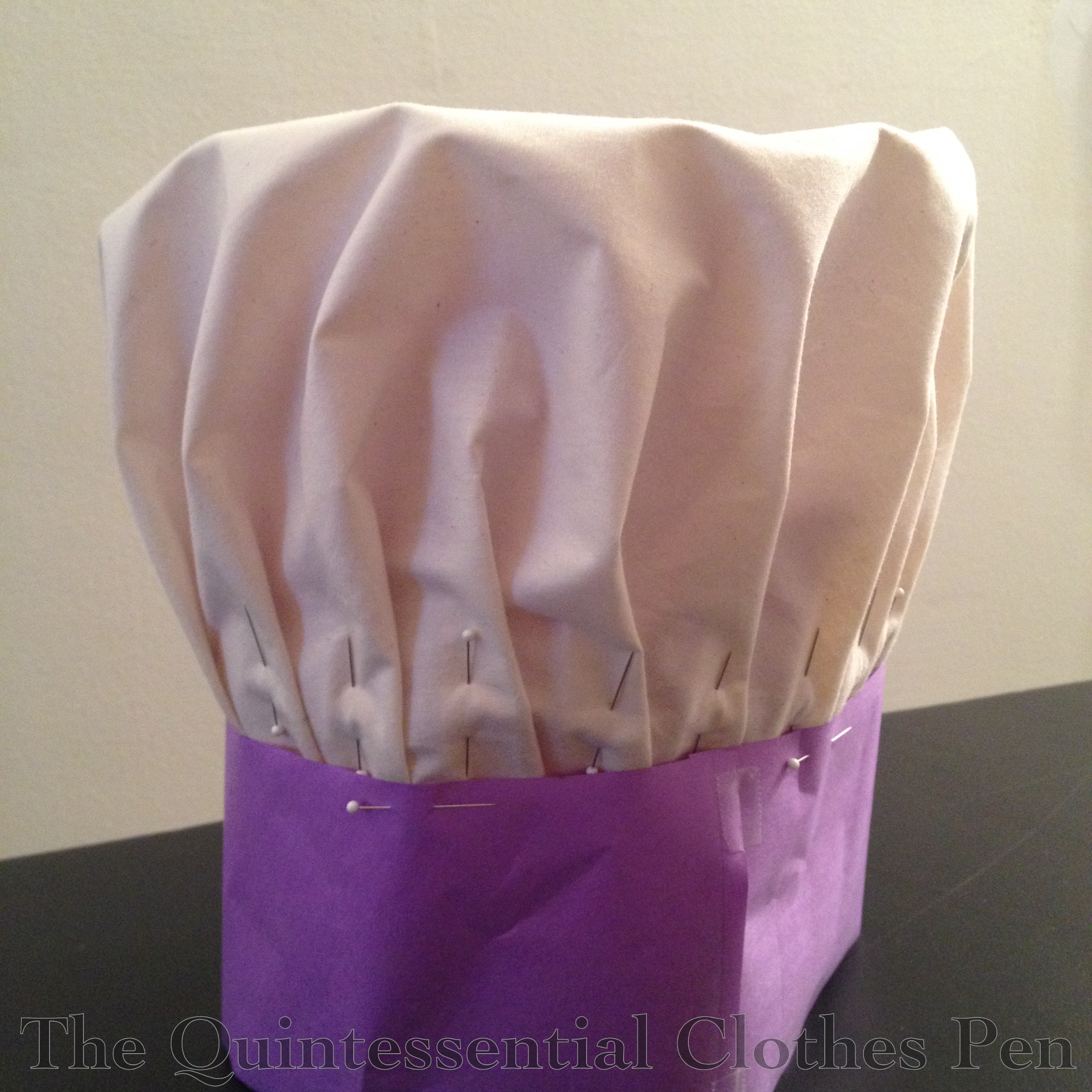 Here is the toque in the mockup stage, early in the process. I was trying to determine scale and proportions more than anything. For ease, I combined the bottom two vertical sections into one piece of paper for the mockup.
