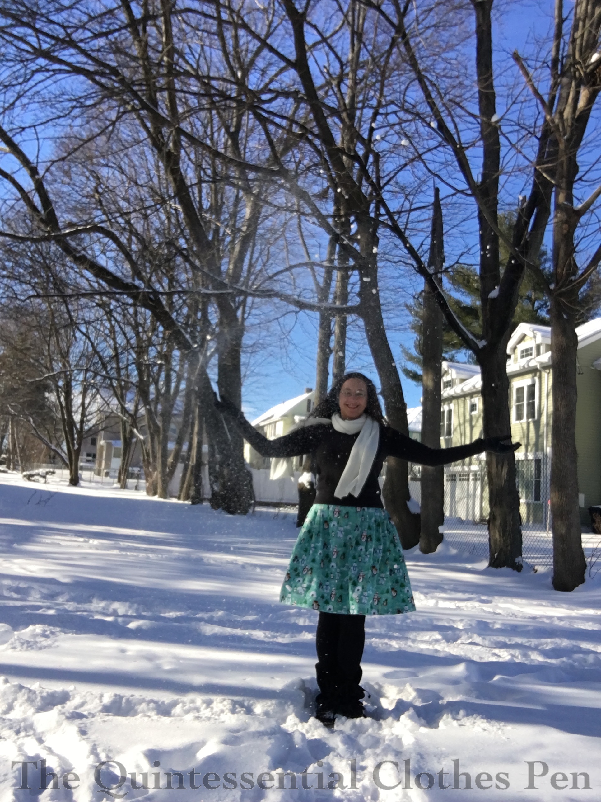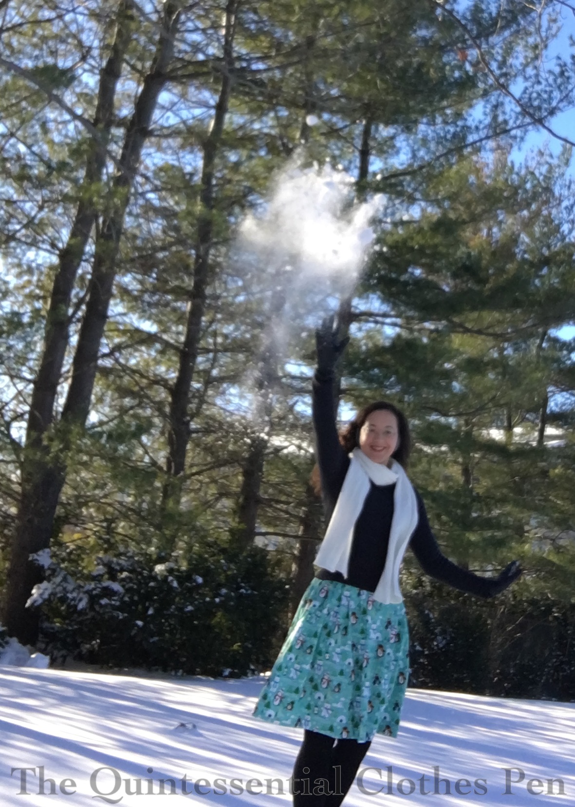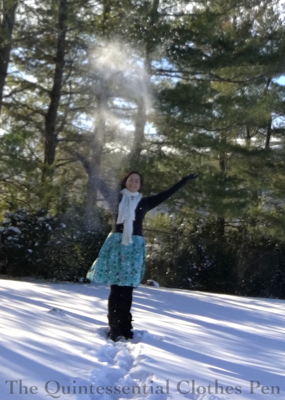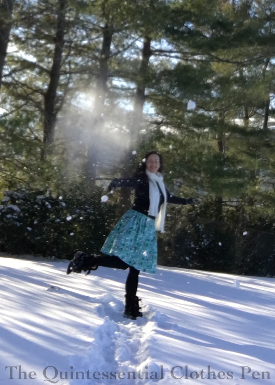 I decided to take the pictures on the only really snowy day we’ve had here so far this winter. We’d had a storm the night before with about 6″ of fresh snow that was just begging to be played in and have this skirt as a companion.