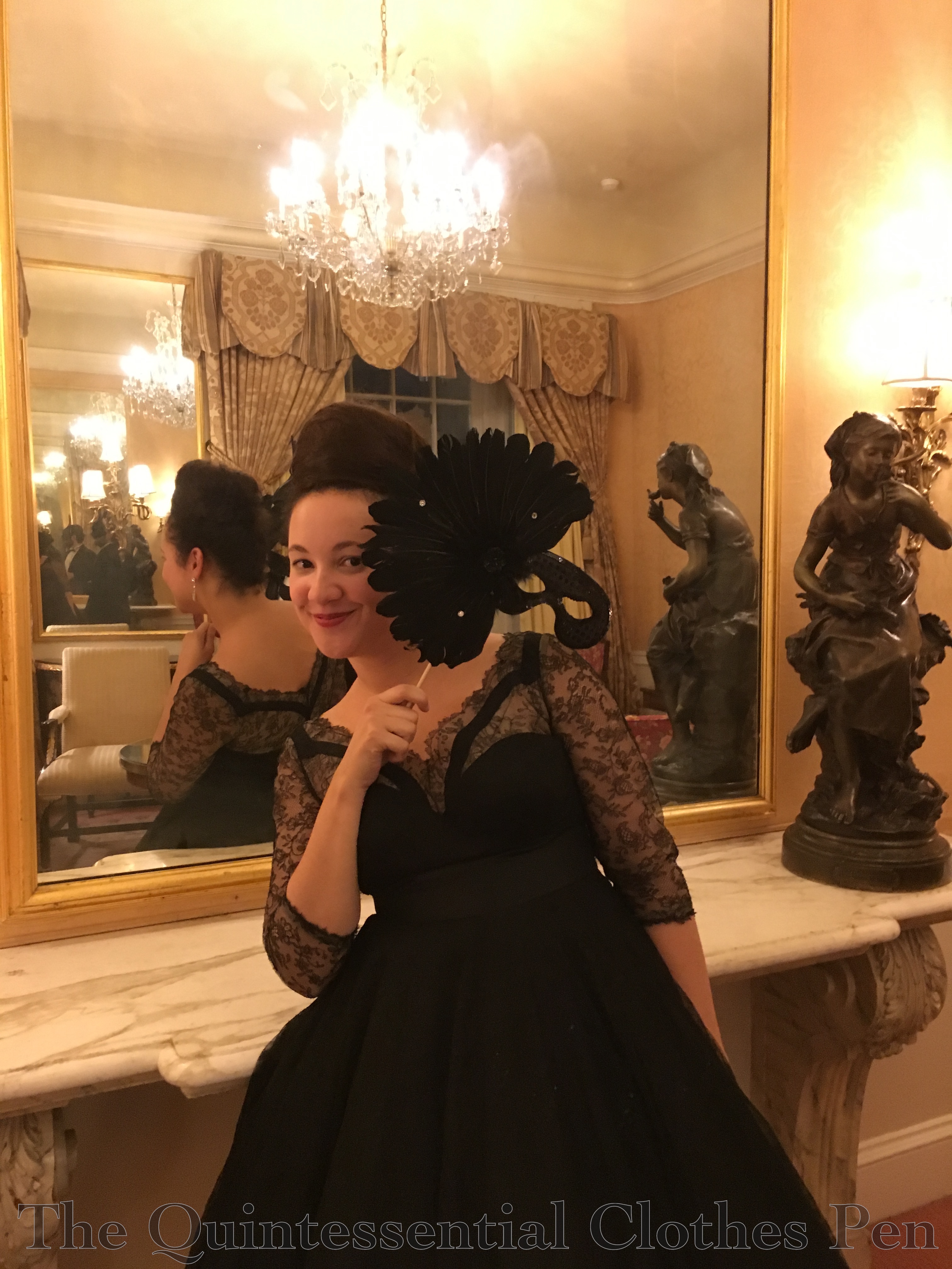 Digressions about masquerades aside, back in November of last year I had the good fortune to attend such an event myself. The theme was 1960s, but I had recently acquired a 1950s dress that fit me so perfectly that it just HAD to be worn, so I opted to be a bit old fashioned for the theme of the party.