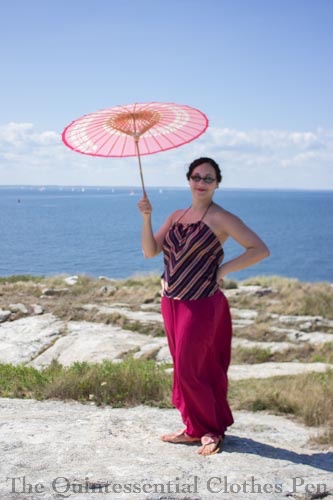 I wore my 1930s beach ensemble for travel to the island and the afternoon picnic. I am always pleased with how the (polyester, ahem) pants don’t wrinkle, even with heat and sweat and sitting, and how gloriously cool and comfortable I am while wearing it.