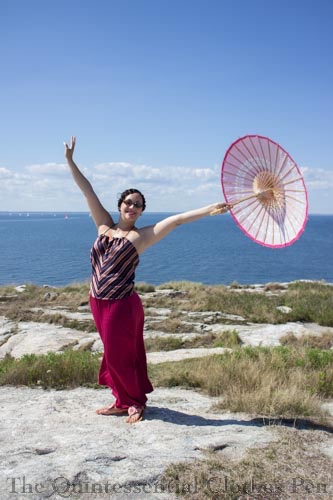 It was quite hot last August, so the strong breeze on the ferry and some parts of the island was quite welcome, as was wading and hiding under my parasol. (Had I not had a sturdy grip, my parasol would surely have been blown away during these pictures.)