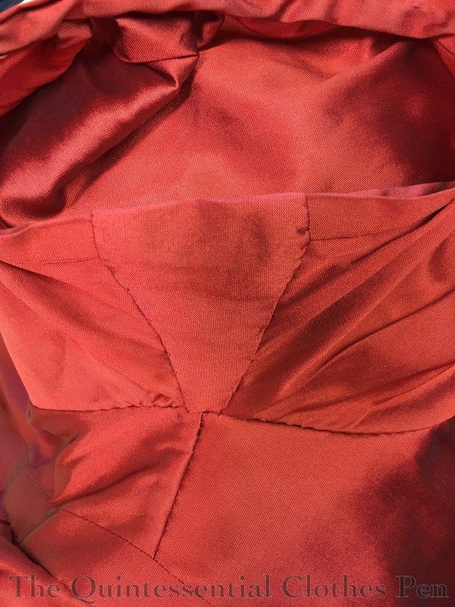 The inside of the dress now looks like this. Previously, it was unlined (I did a post about the original inside finishing of this dress, which you can see here). Now, the center back panel has a lining to help stabilize it and encase the original back panels and waistband extension. Still tidy, yay!