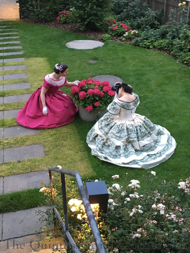 Capturing the photographer in a photo! Isn’t it lovely how well their dresses coordinate with the colors in the garden?
