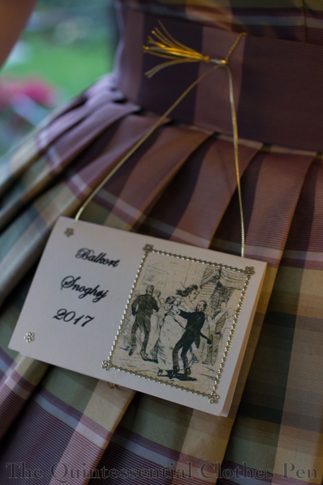 Our hosts provided us with dance cards, which had a convenient hook for hanging the dance card off of a belt or waistband. In my case, the belt on my dress was perfect!
