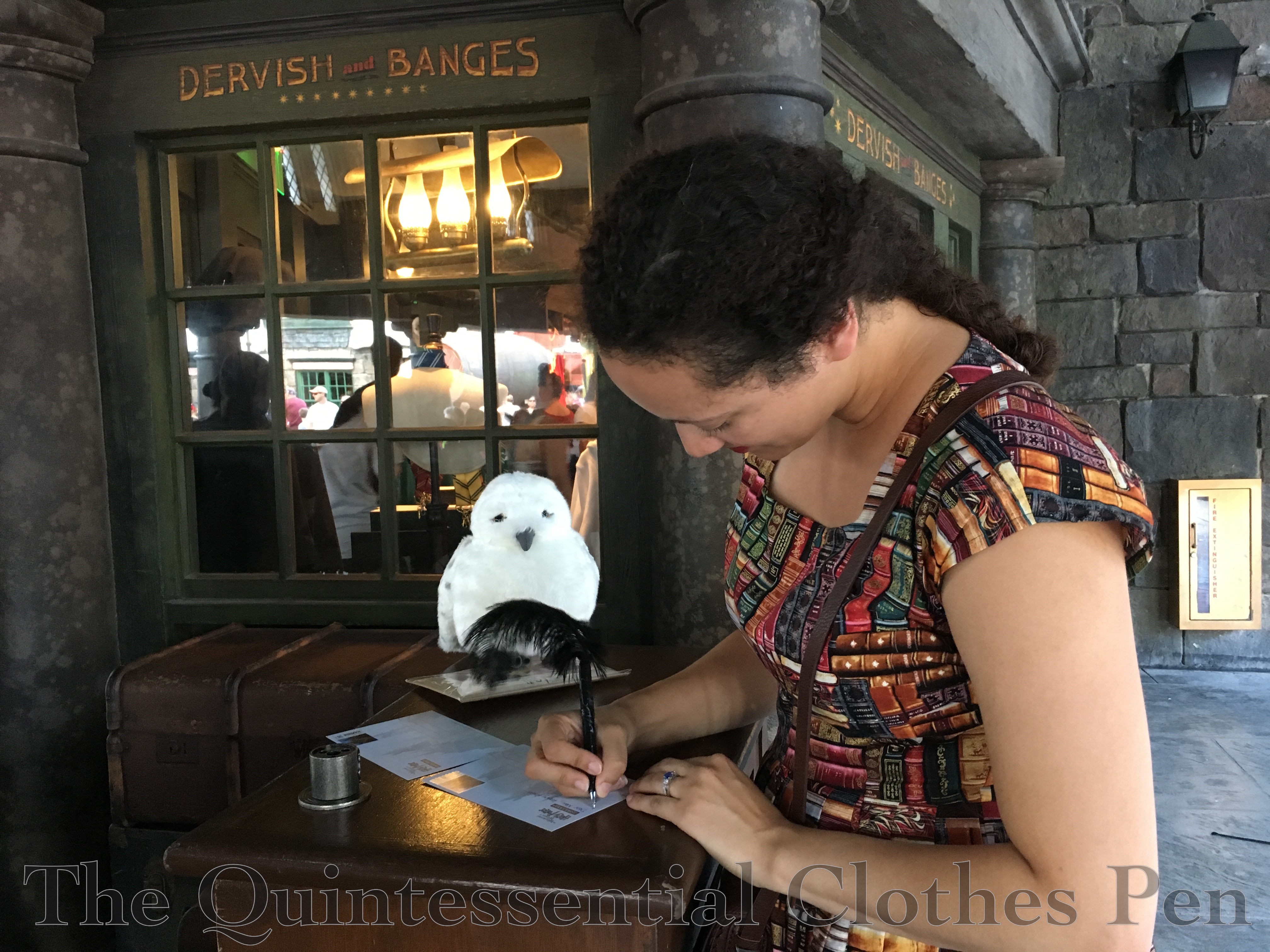 You have to go outside to get your Hogsmeade stamp. Here I am writing a postcard to a friend with a snowy owl looking on. I might have also written a postcard to myself…! Even out here there are owls in the rafters that hoot, turn their heads, and move their wings.