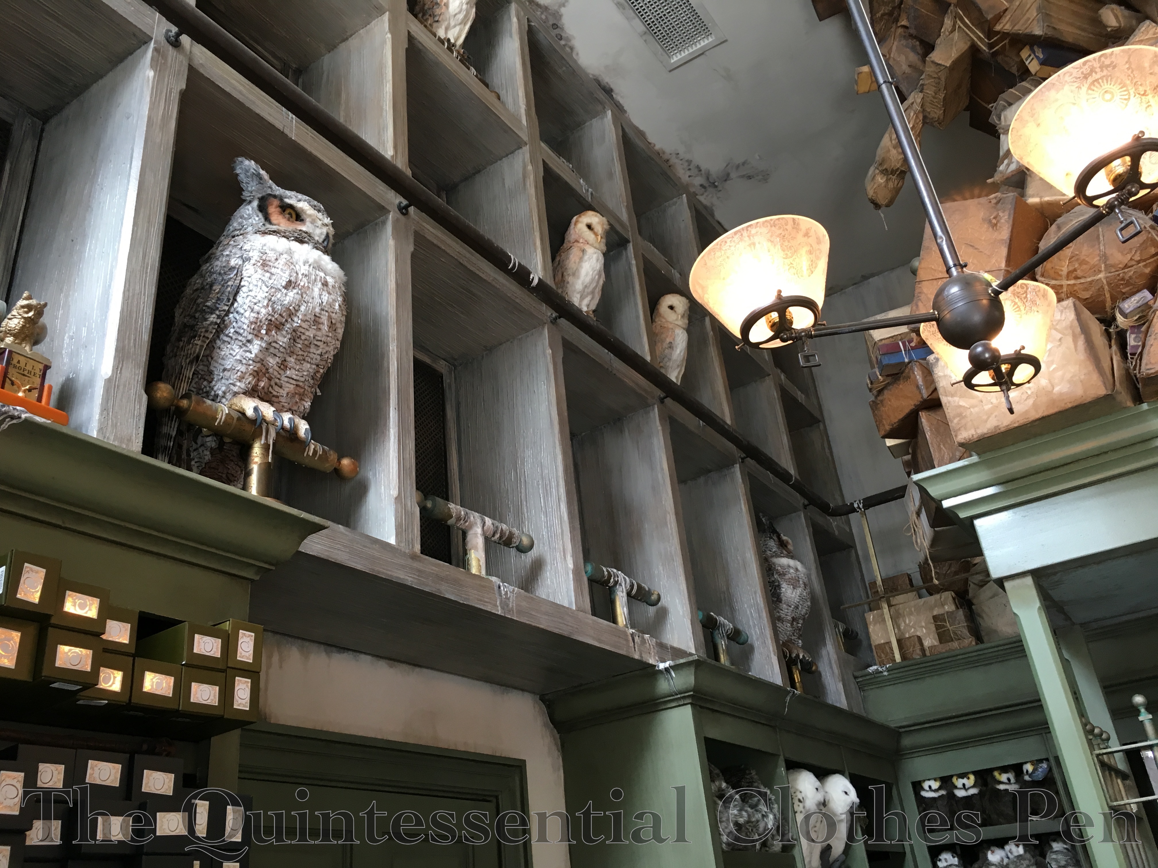 Hogsmeade is where Owl Post is located. There’s a whole shop for it, with owls in the nooks that hoot and move.