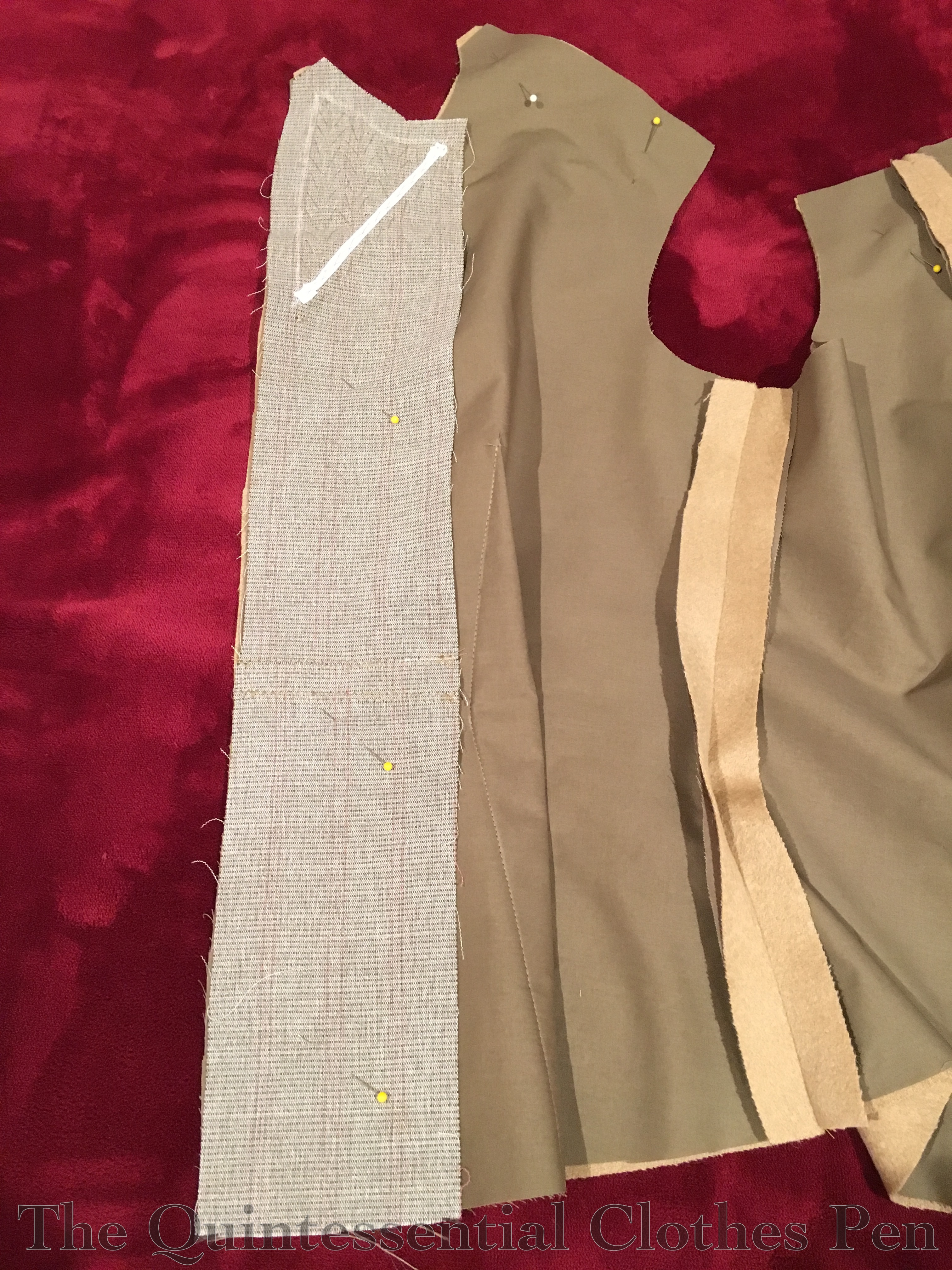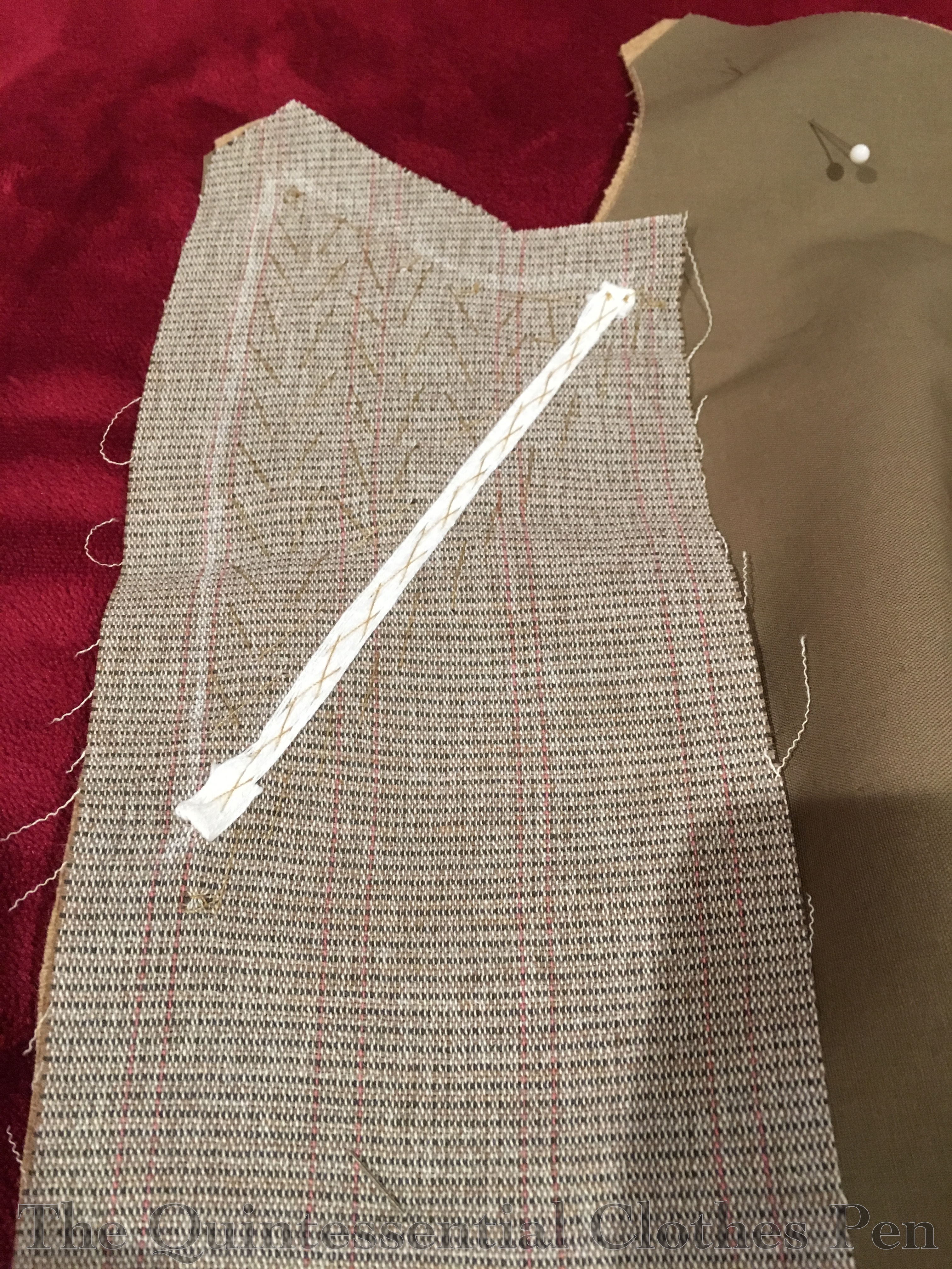 Here is just one side of the front. It gives a clearer view of the front dart and the canvas that supports the lapel and front edge.