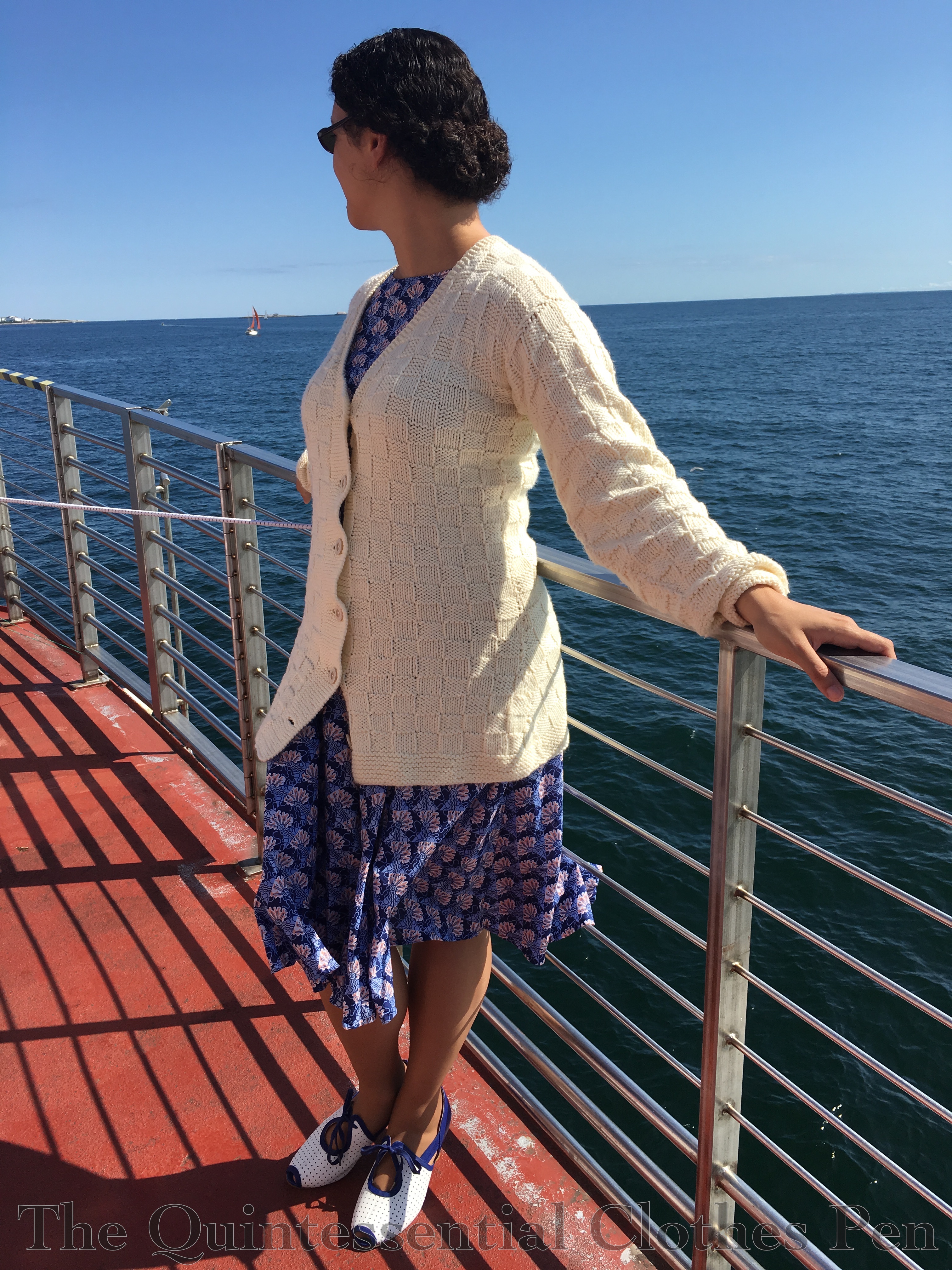 Back to last year, here I am heading to the island in my 1925 Blue Coral Day Dress, 1917 Knitted Sweater of Angorina, and blue Ginger shoes from Royal Vintage (now American Duchess).