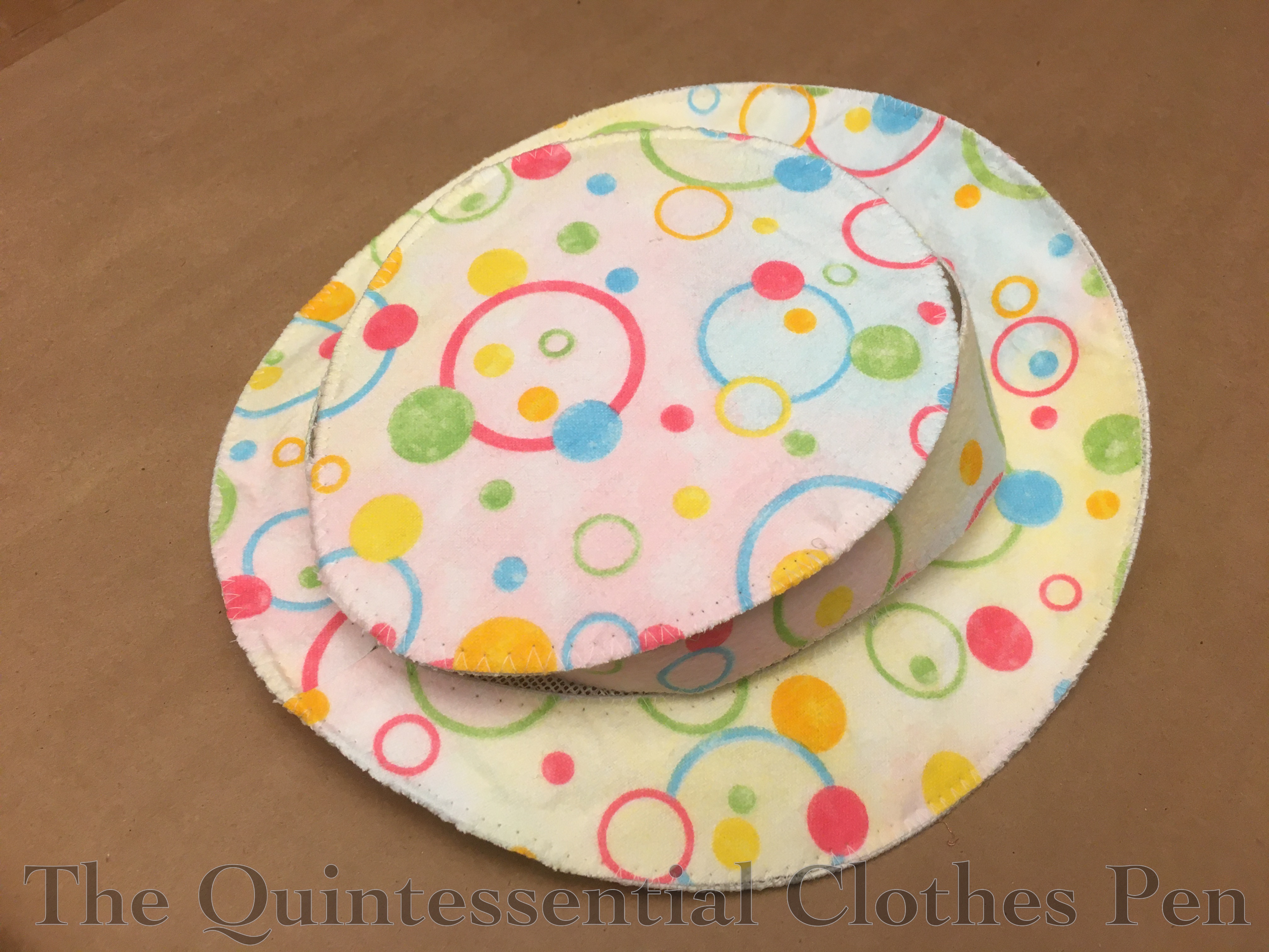 Next, I covered the top of the brim. To do this, I clipped and turned under the outer edge seam allowance, pinning it in place. The head opening was also pinned in place. Then both edges were carefully sewn by hand.
