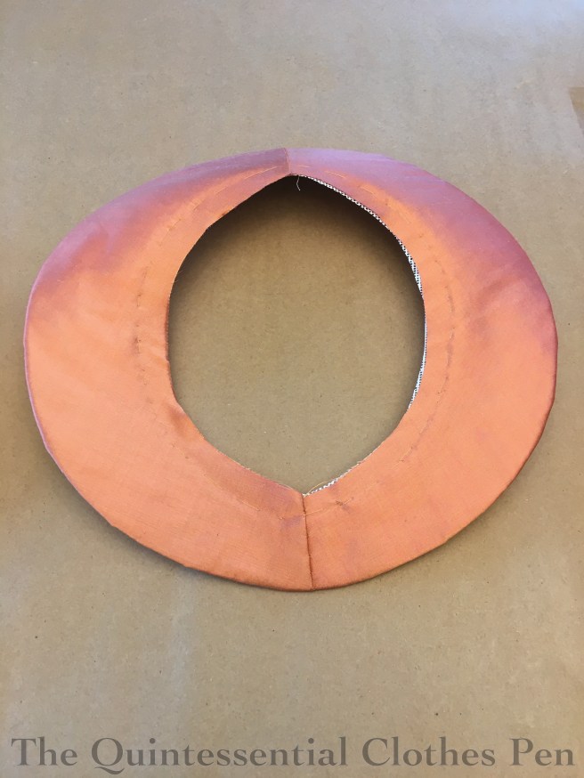 And here is what the brim looked like flipped over at this stage. I also hand tacked the silk around the head opening, to keep the tension even across the curves of the brim.