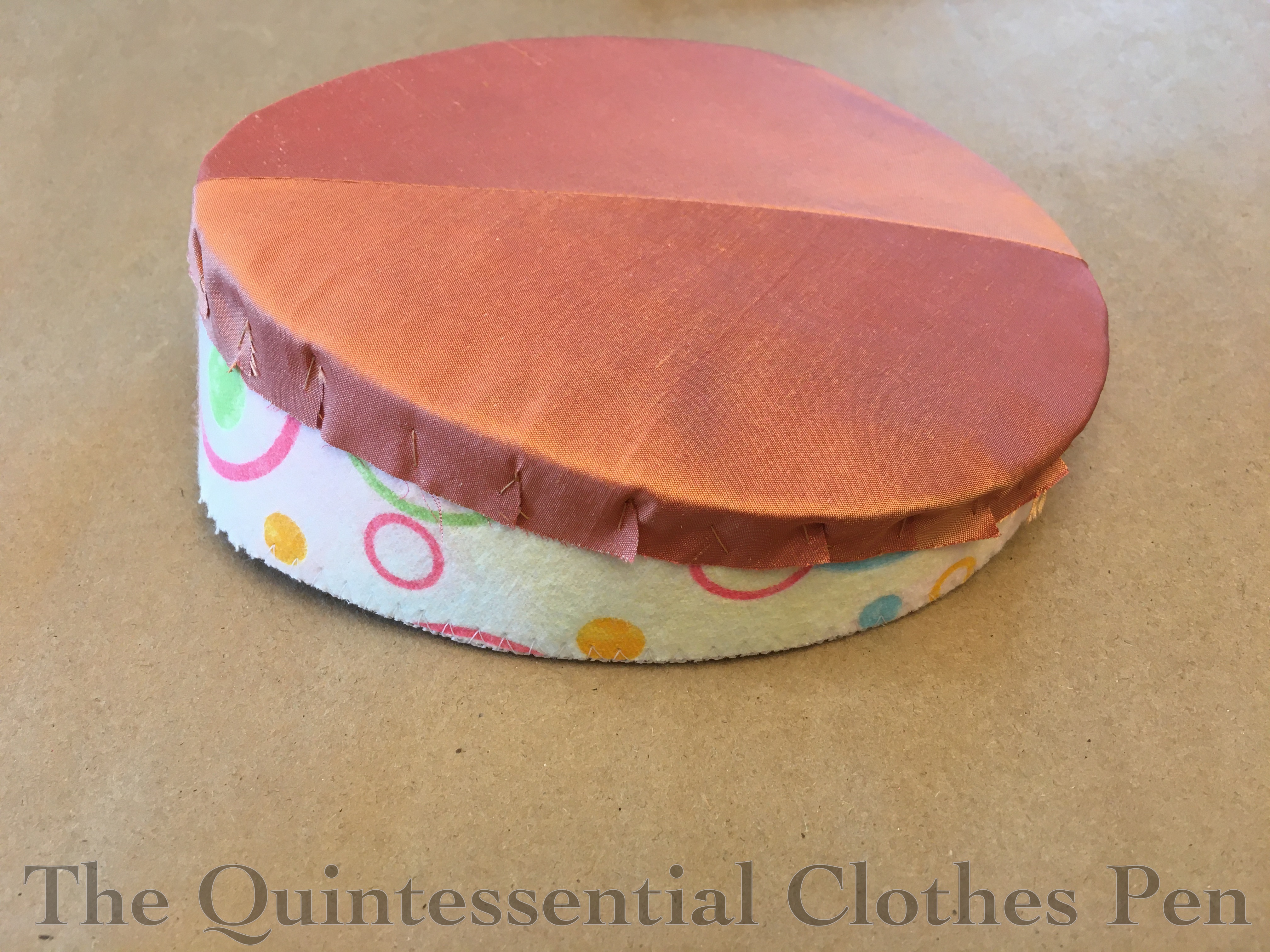 And that’s it! It takes a bit of time to hand sew all those sections of the hat (even longer if I don’t machine sew the first few steps), but it’s worth it to have a super sturdy, beautifully covered saucer of trim.