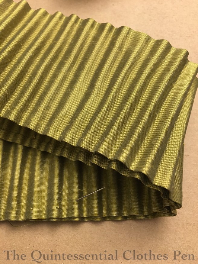 I thought it would be fun to use the remnants of my fluted trim on the hat (read all about how I made it here). I wanted it to resemble wide ribbon (and I wanted to hide the hems, partly because they are only pressed and not sewn in place).