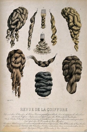 Ten illustrations of different types of wigs and hair pieces, May 1875, via Hats From History