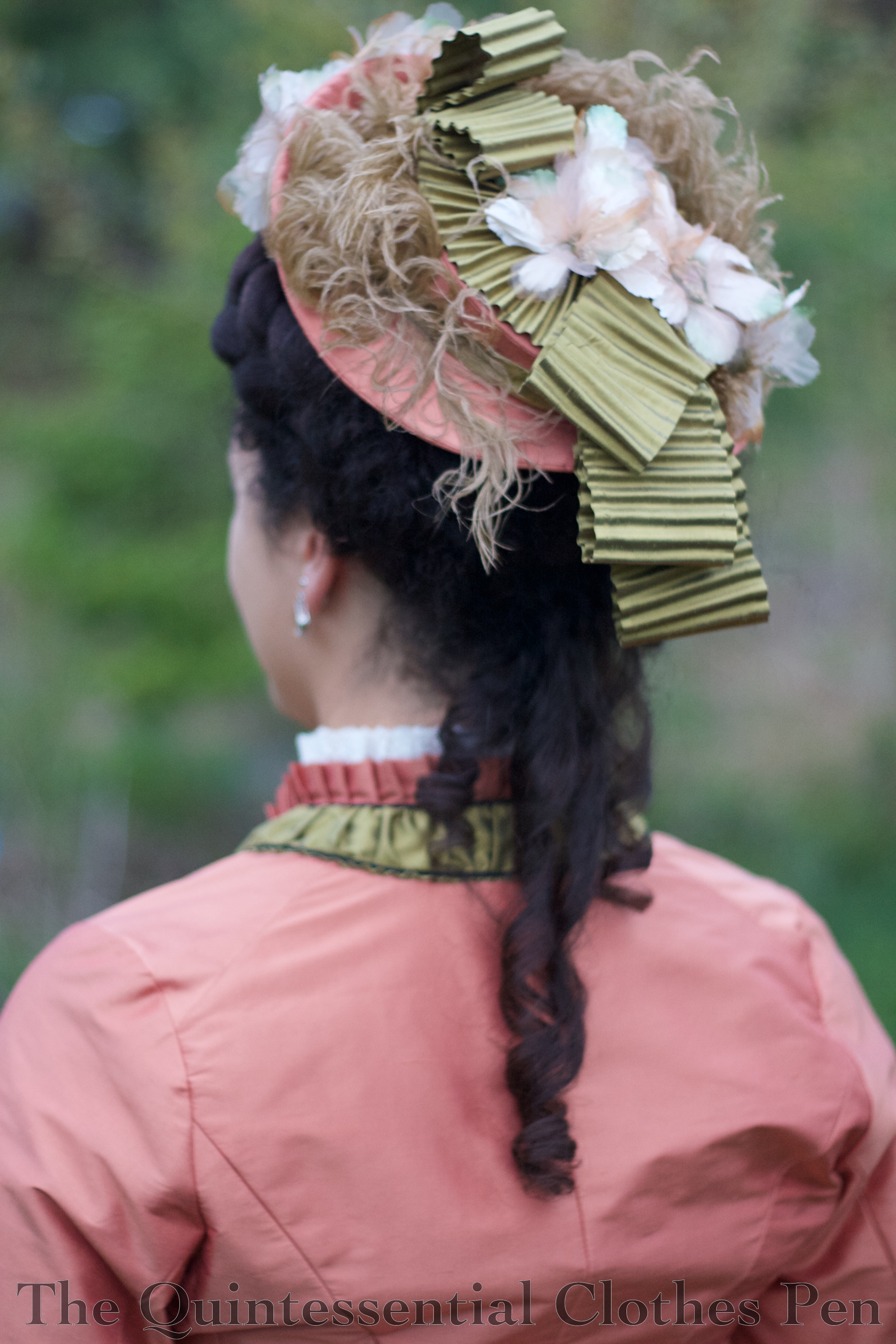 Last post, I shared details about the style I decided on for the hat to accompany my 1875 reception dress, as well as how I made the hat.