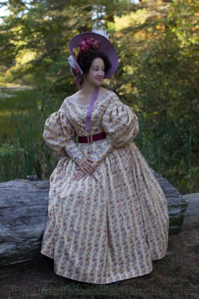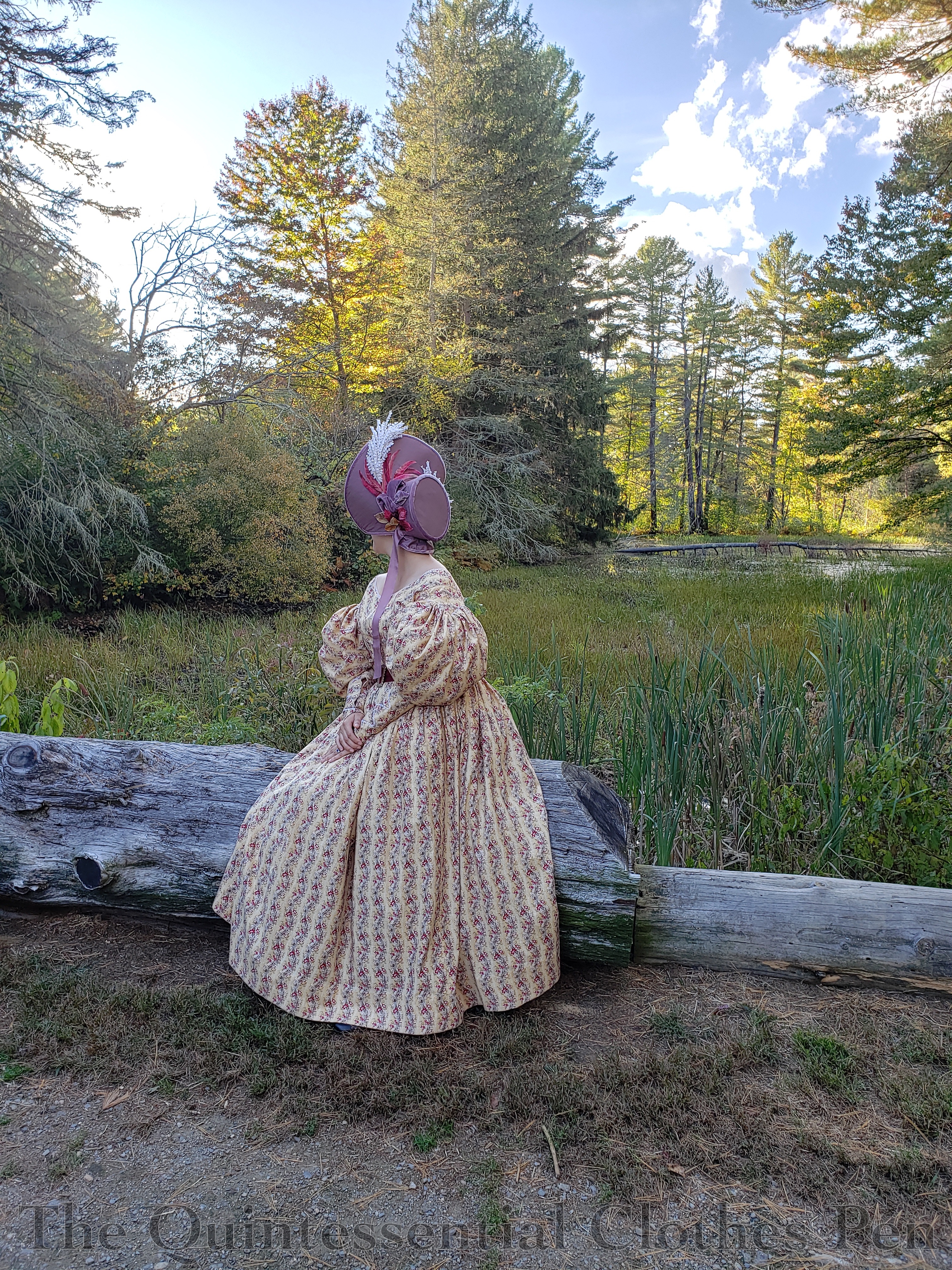Some of my recent posts have mentioned my excursion into sewing clothing from the 1830s. Most recently, in September, I posted about making a corded petticoat to help support a fashionable 1830s silhouette. I also shared a reminder about the fabric I’ve had in mind for an 1830s dress since I bought it seven years ago. It’s finally time to share the finished ensemble created with that fabric!
