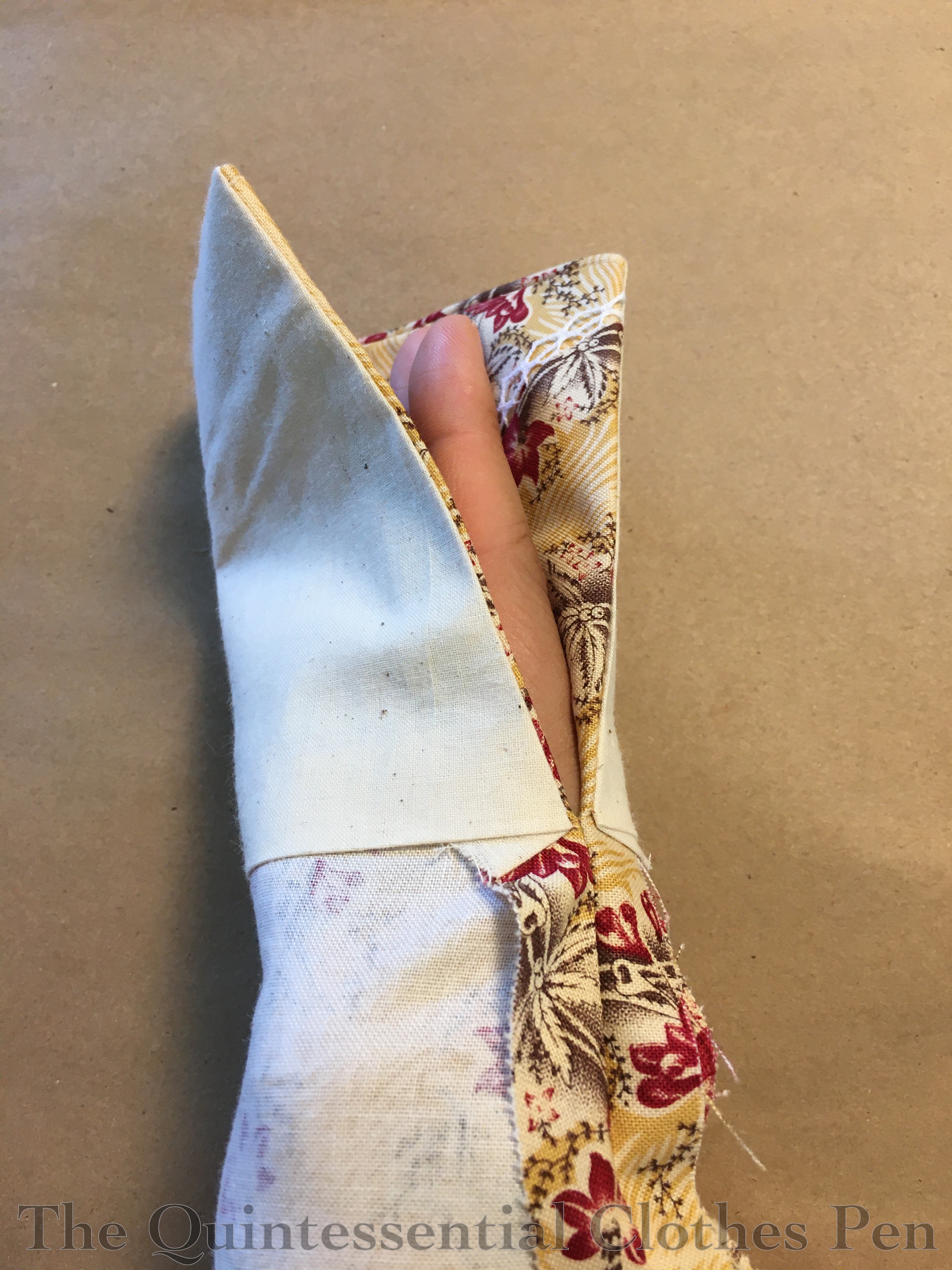 So… I got this far and realized that my sleeve was too narrow (even though I’d had no trouble in my mockup!) and my hand wouldn’t fit through the opening! Even if I made the opening higher, the sleeve edges wouldn’t butt, but would have a gap!