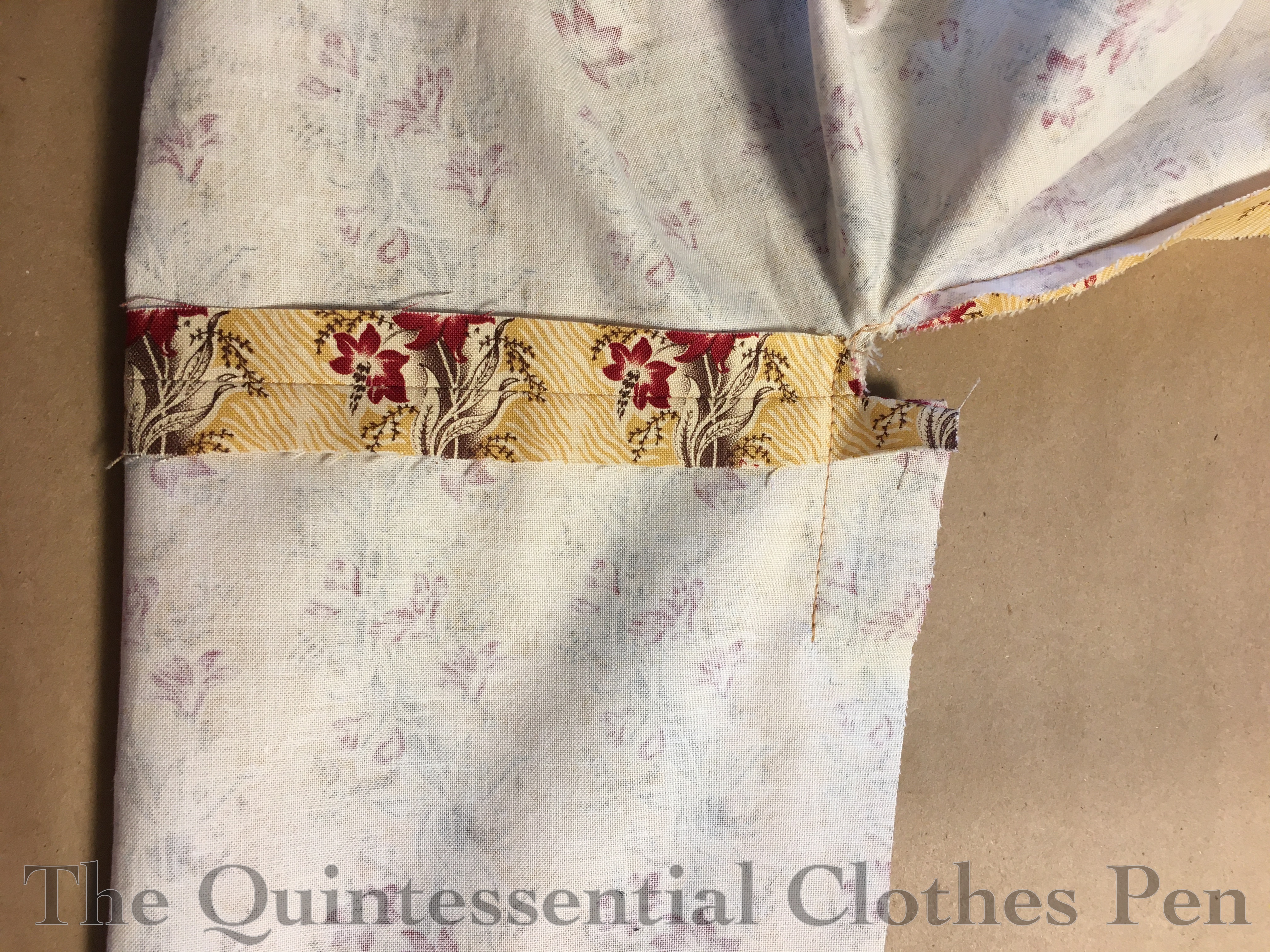 Ah yes, the cording! There is 1/16″ cotton cording in most of the bodice seams (front, side back, shoulders, armholes, neckline, and to finish the cuffs). This detail is taken directly from extant 1830s dresses.