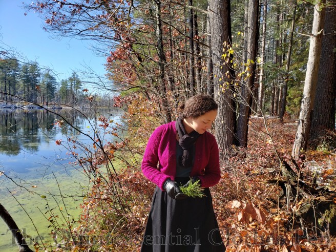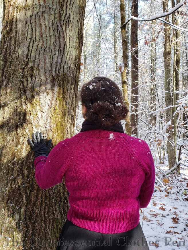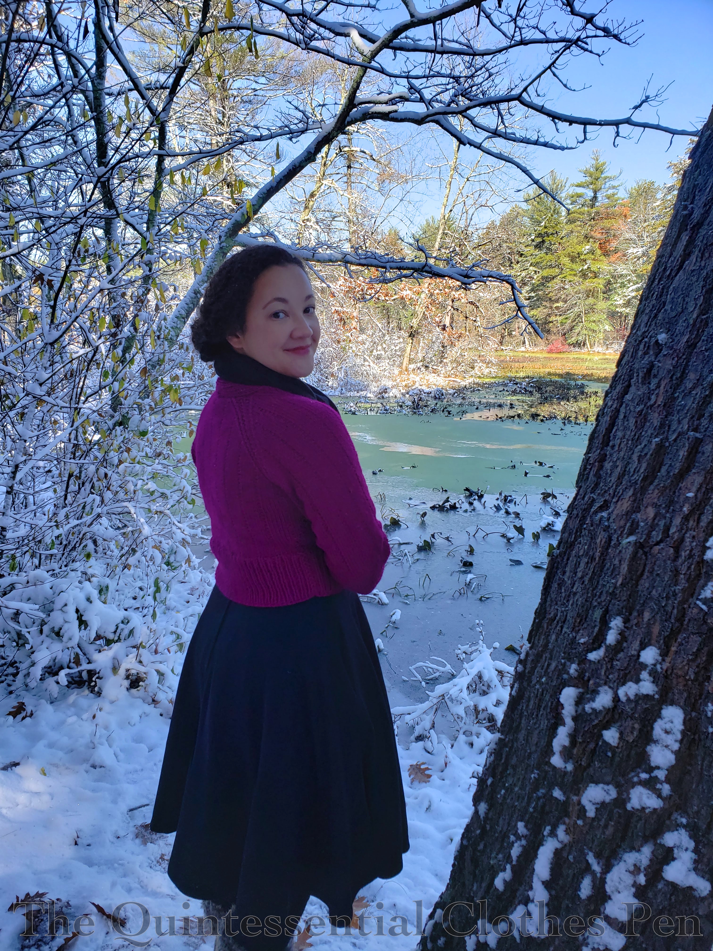 My last two posts were aimed at sharing photos of my black wool 3/4 circle skirt and 1950s boysenberry raglan cardigan. Those posts both included a bunch of photos, all of which were taken during a magical walk through the woods, but there were many wonderful photos in addition to those that I didn’t feel needed to be added to the garment documentation posts.