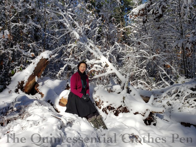 Once I arrived home I realized I should have thrown on some of my sewn pieces most conducive for warmth to take photos.