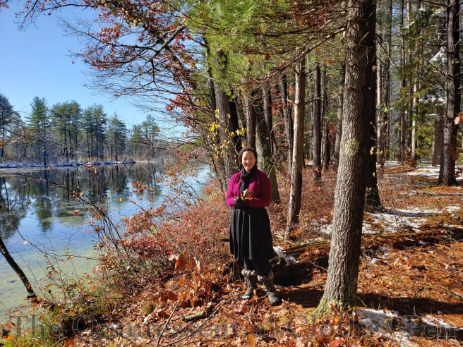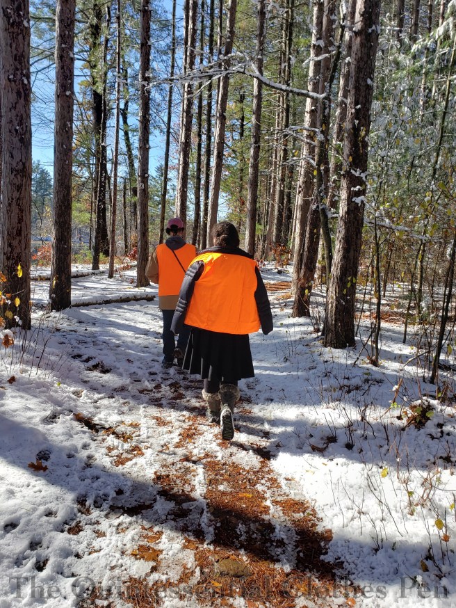 In between photos, I donned my coat and orange vest. Safety is important when it’s hunting season in the woods!