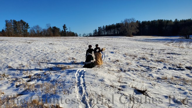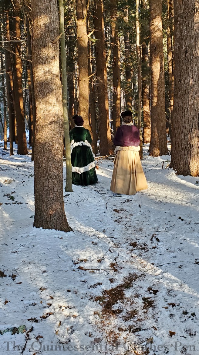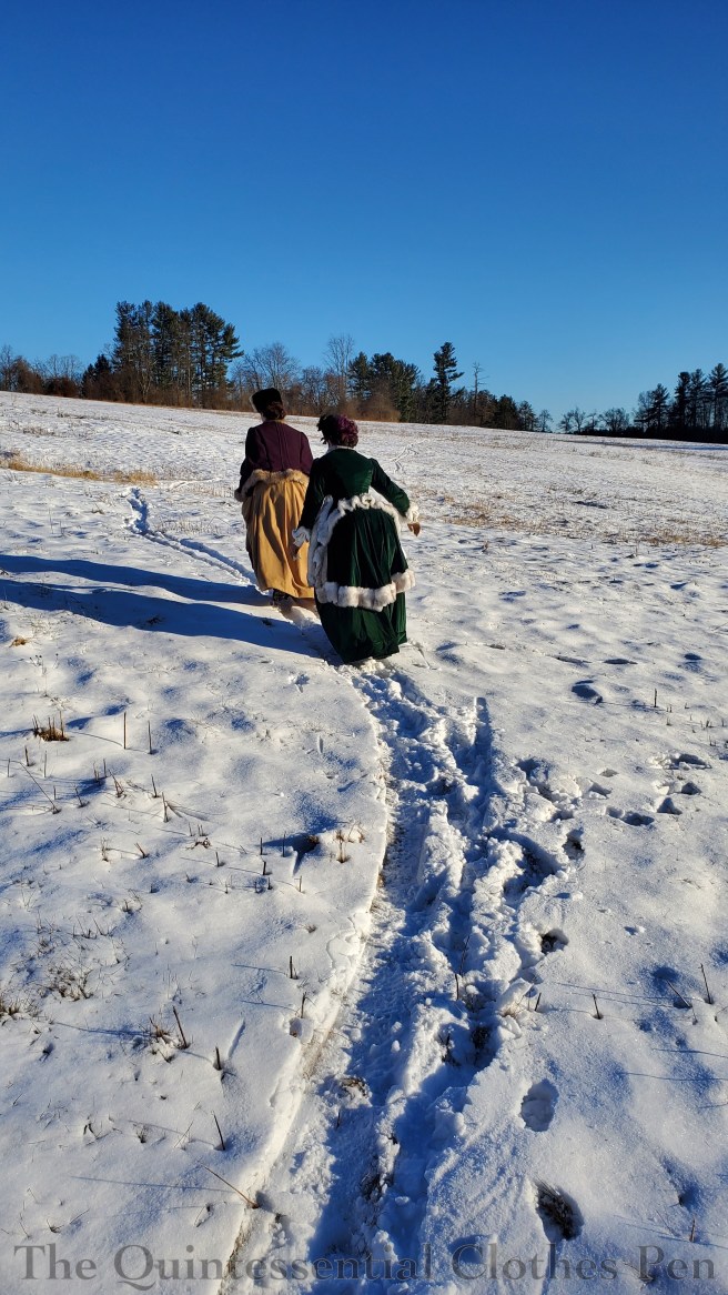 It was a beautiful, sunny, very cold day. There was relatively new snow that covered everything. Being just a few inches, it was not deep enough to be a hassle to walk through in a long skirt.